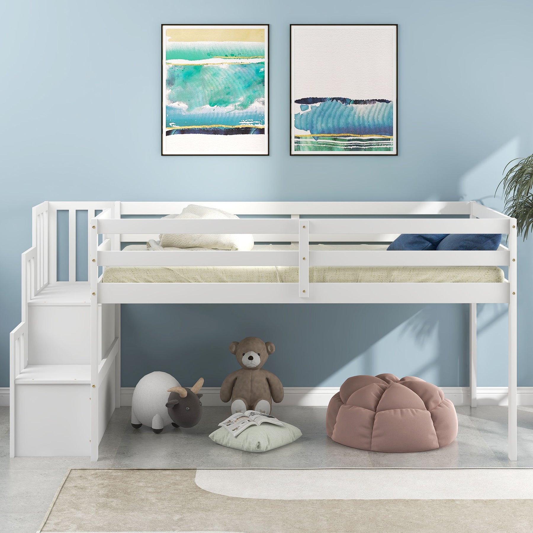 - Optimized Storage Space: Equipped with 2 storage steps, this loft bed ensures toys and books can be neatly organized, keeping the bedroom tidy.