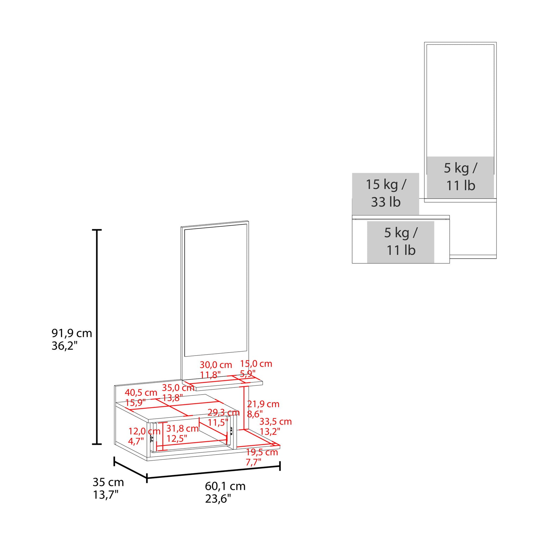 - Convenient Storage: Upper shelf for keys and decor