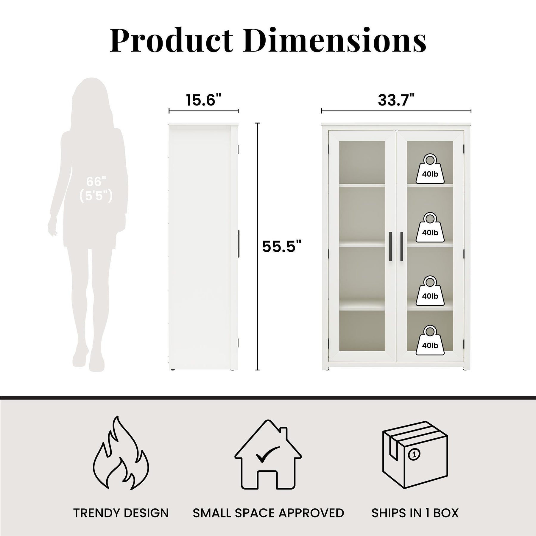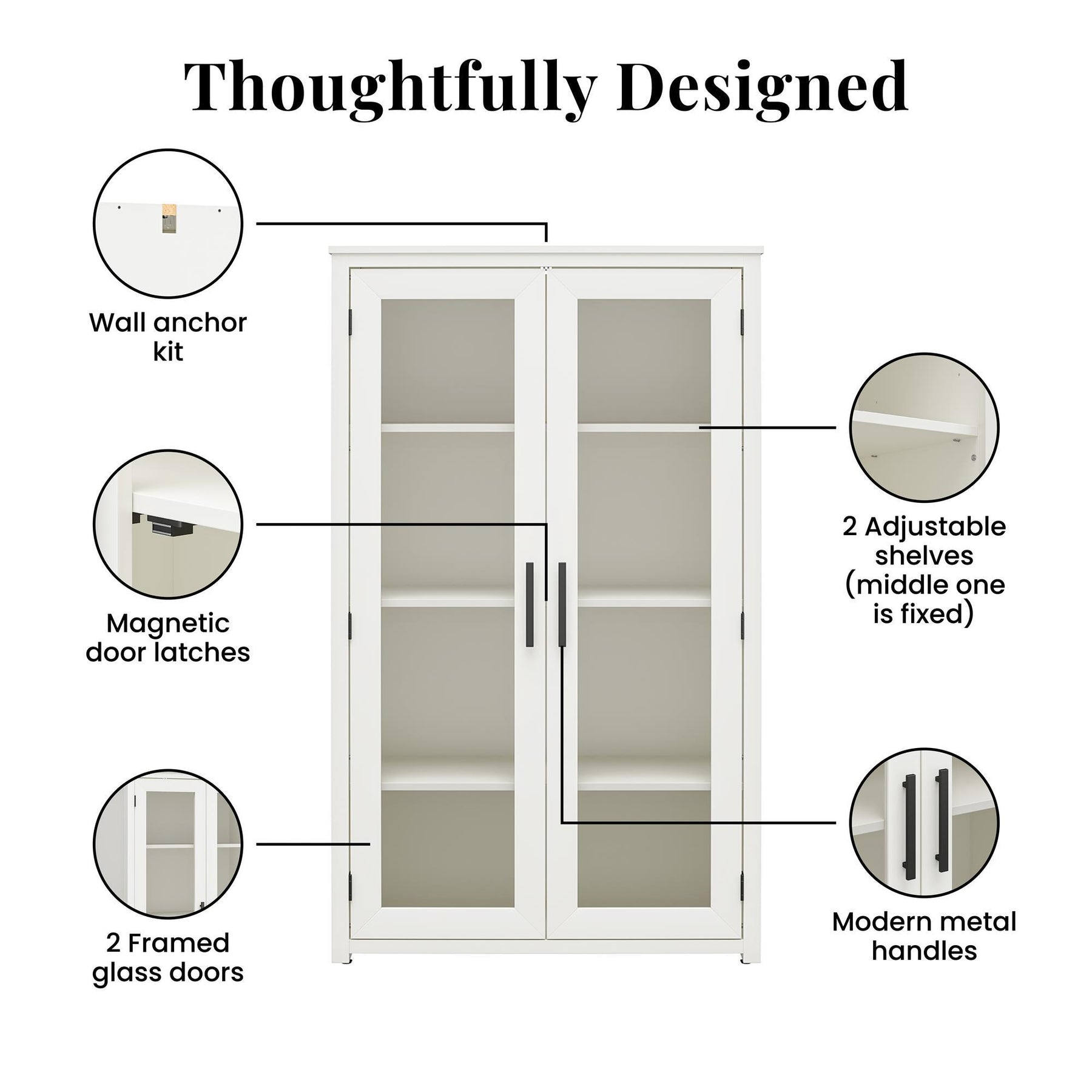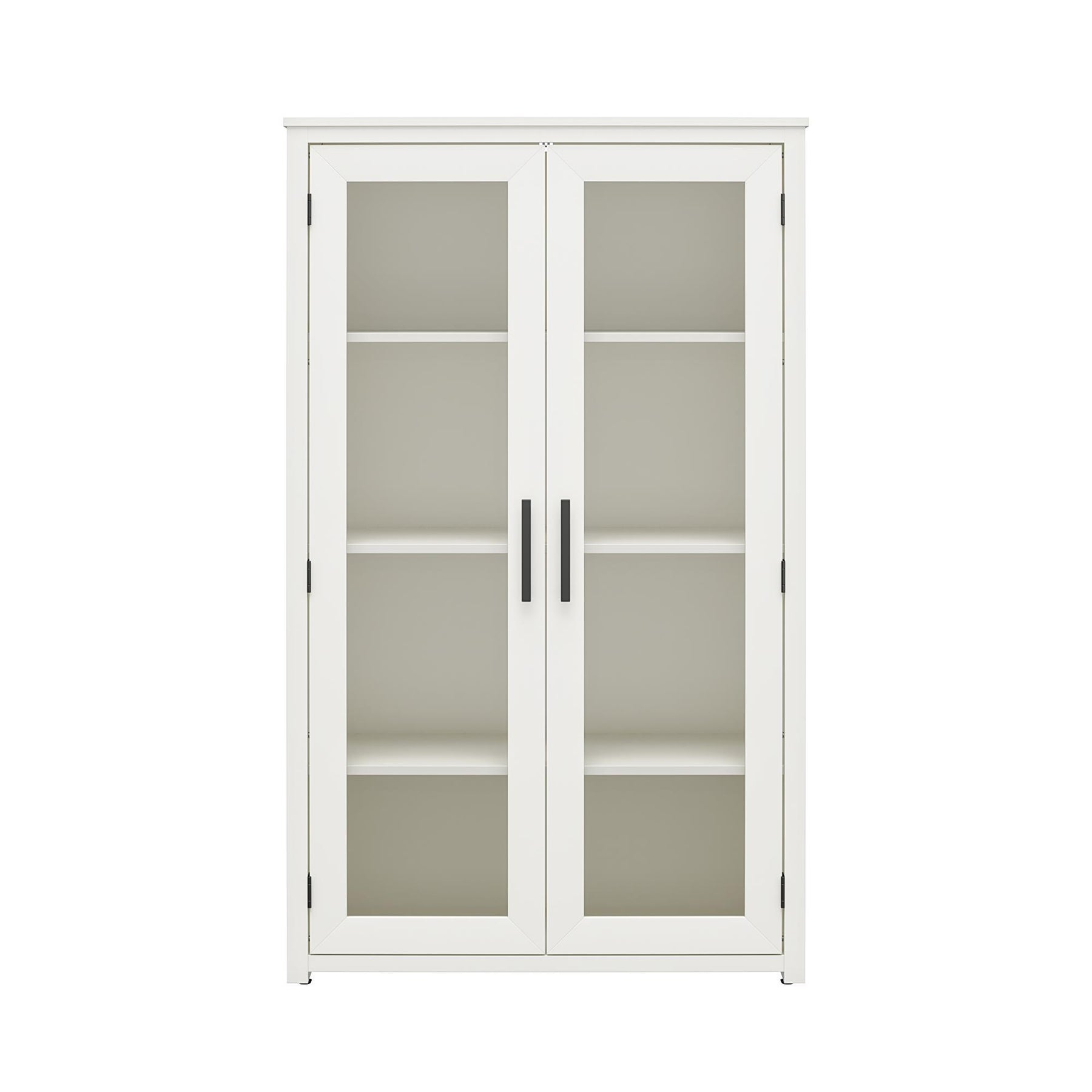 • Four Interior Shelves: Spacious storage behind glass doors; two adjustable shelves accommodate varying item heights
