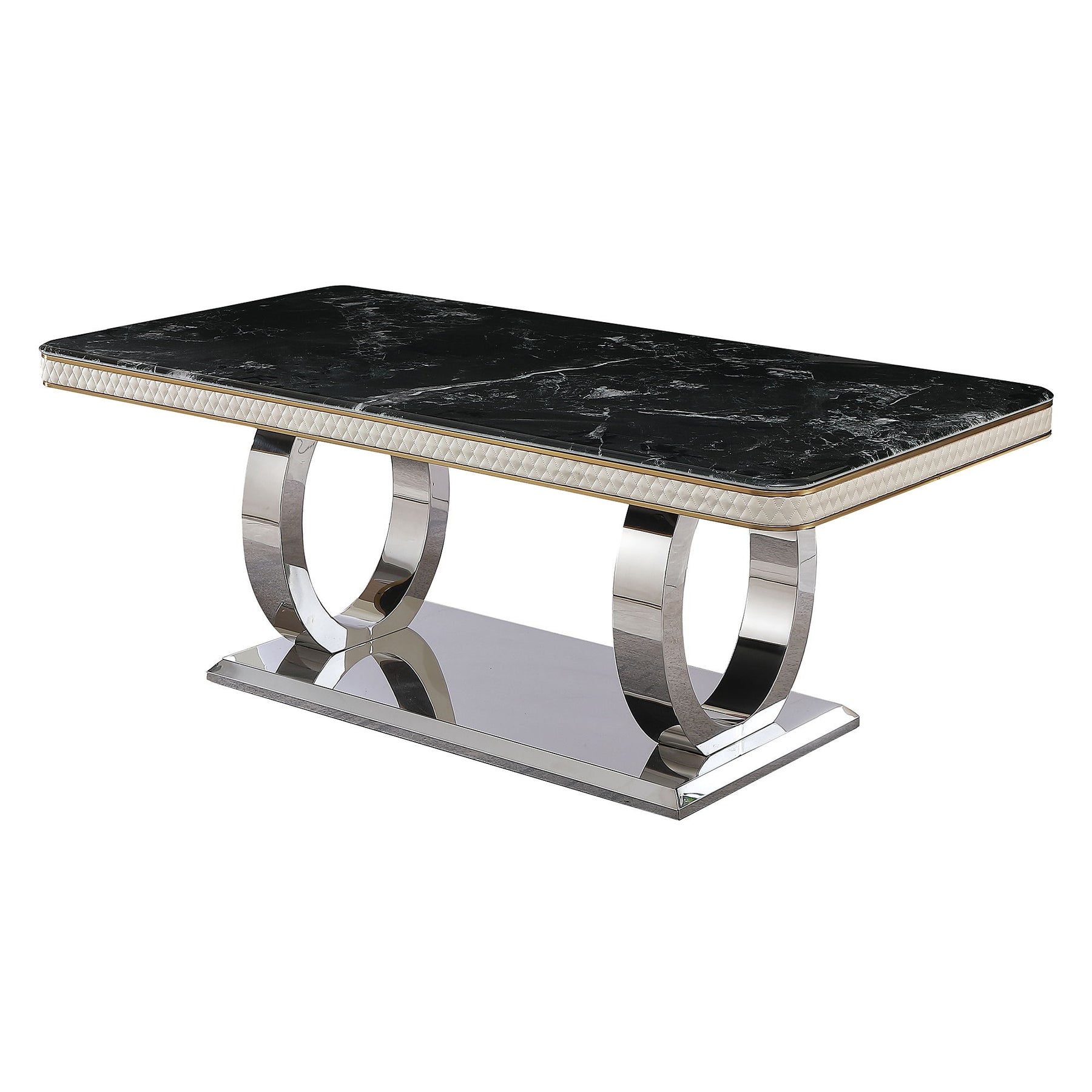 Luxury Modern Dining Table With Faux Marble Top And Dual Circle Base - Black