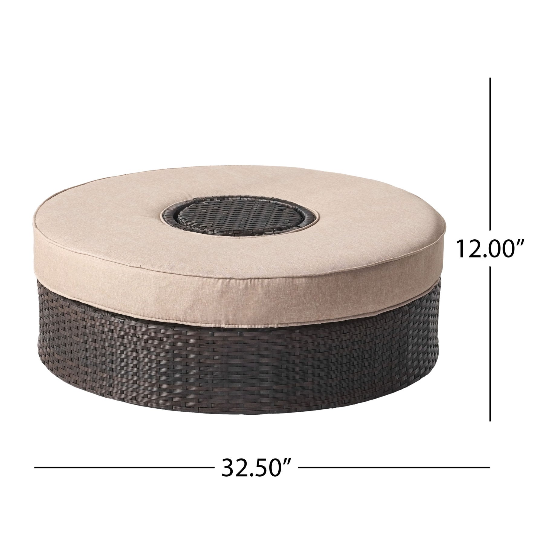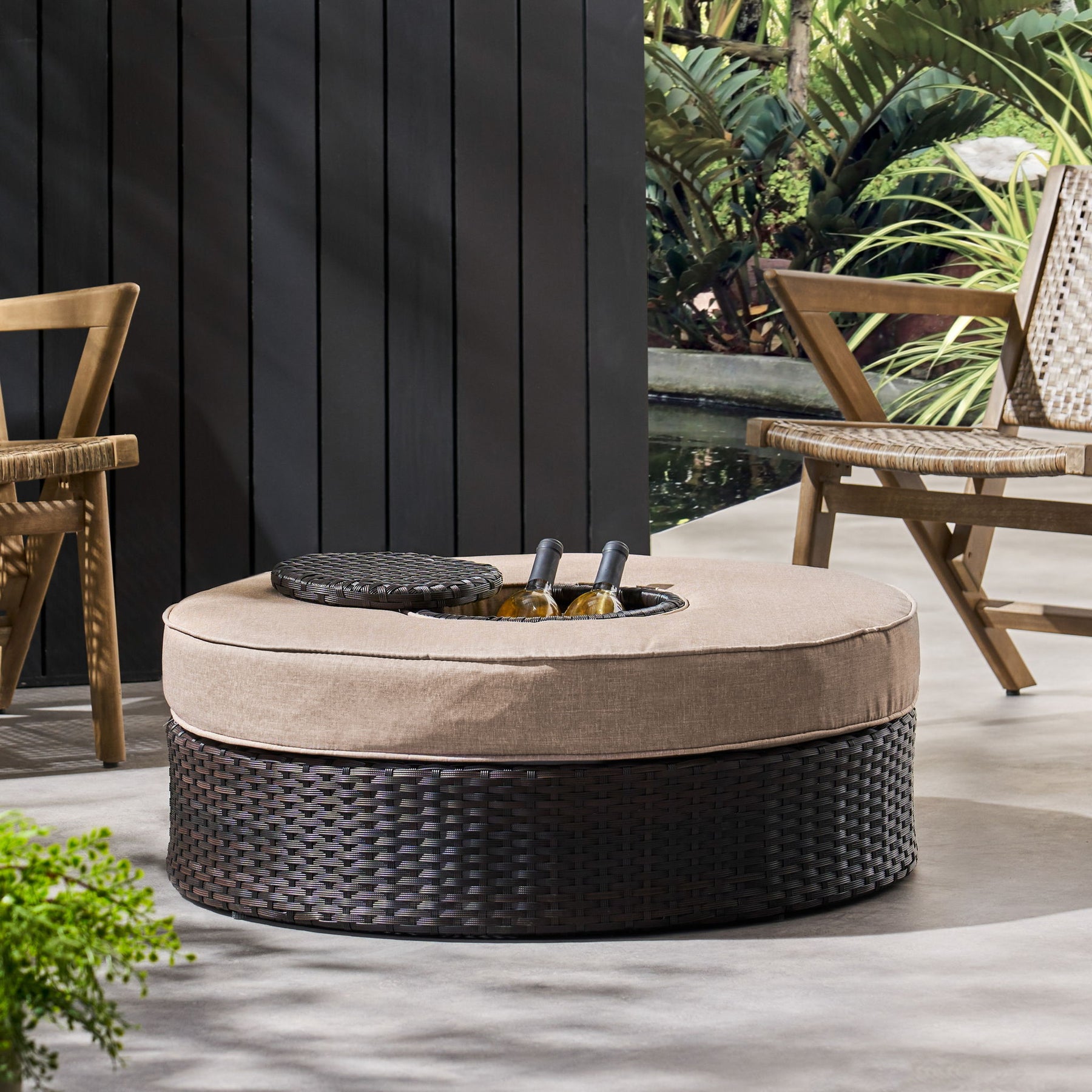 Modern Madras Ottoman With Ice Bucket Rattan, Iron, Waterproof Fabric - Brown