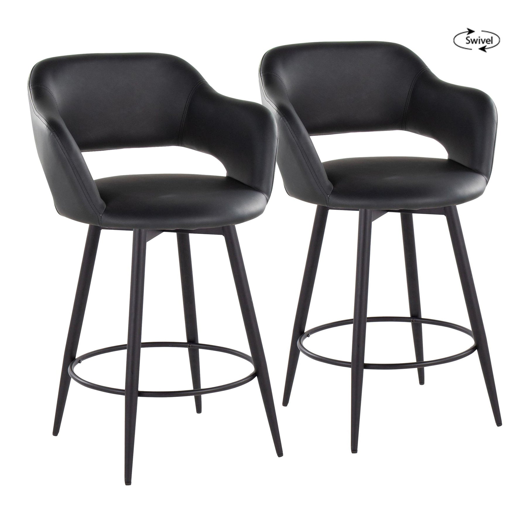 Margarite - Contemporary Fixed Height Counter Stool With Swivel With Round Footrest (Set of 2)
