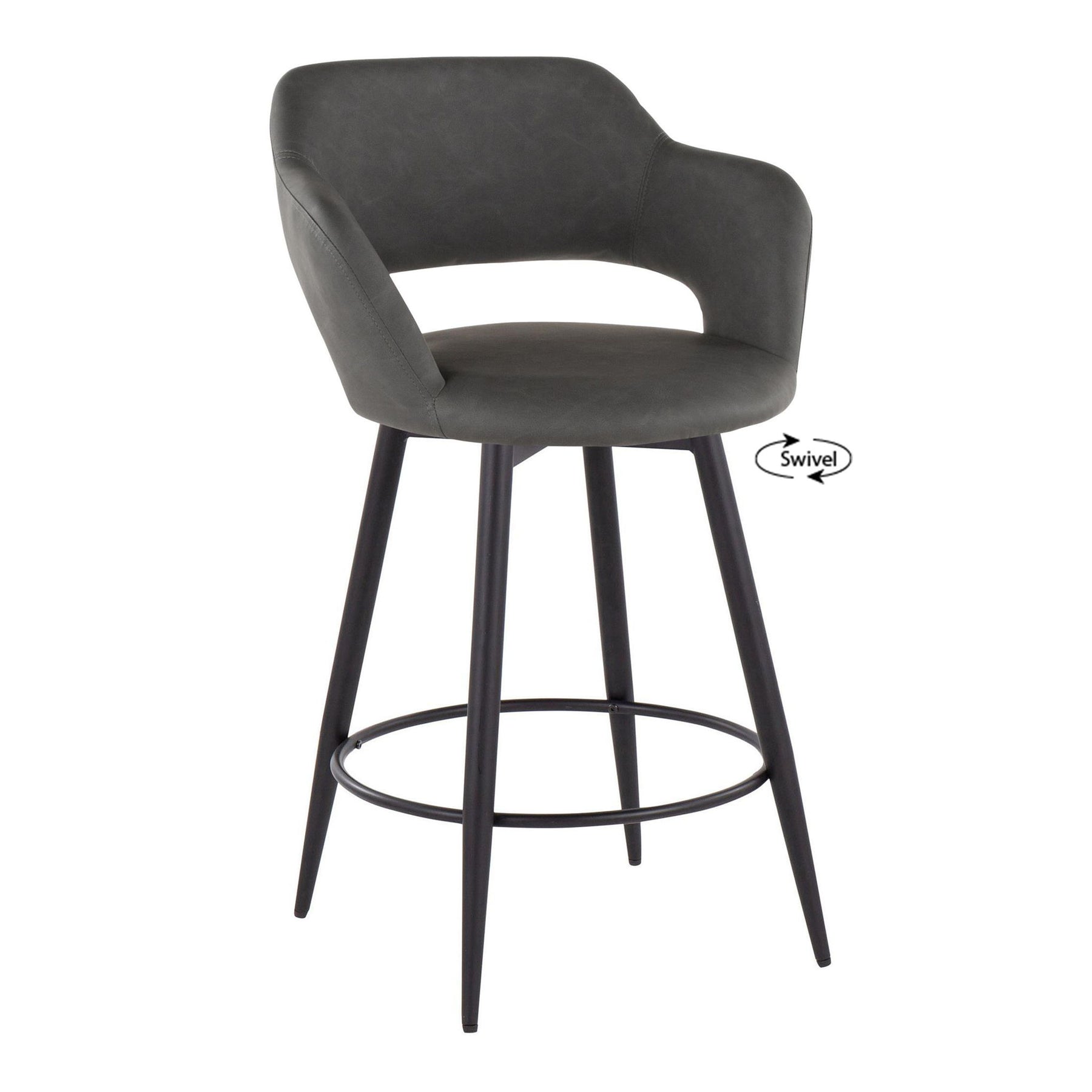 Margarite - Contemporary Fixed Height Counter Stool With Swivel With Round Footrest (Set of 2) - Matte Black / Gray