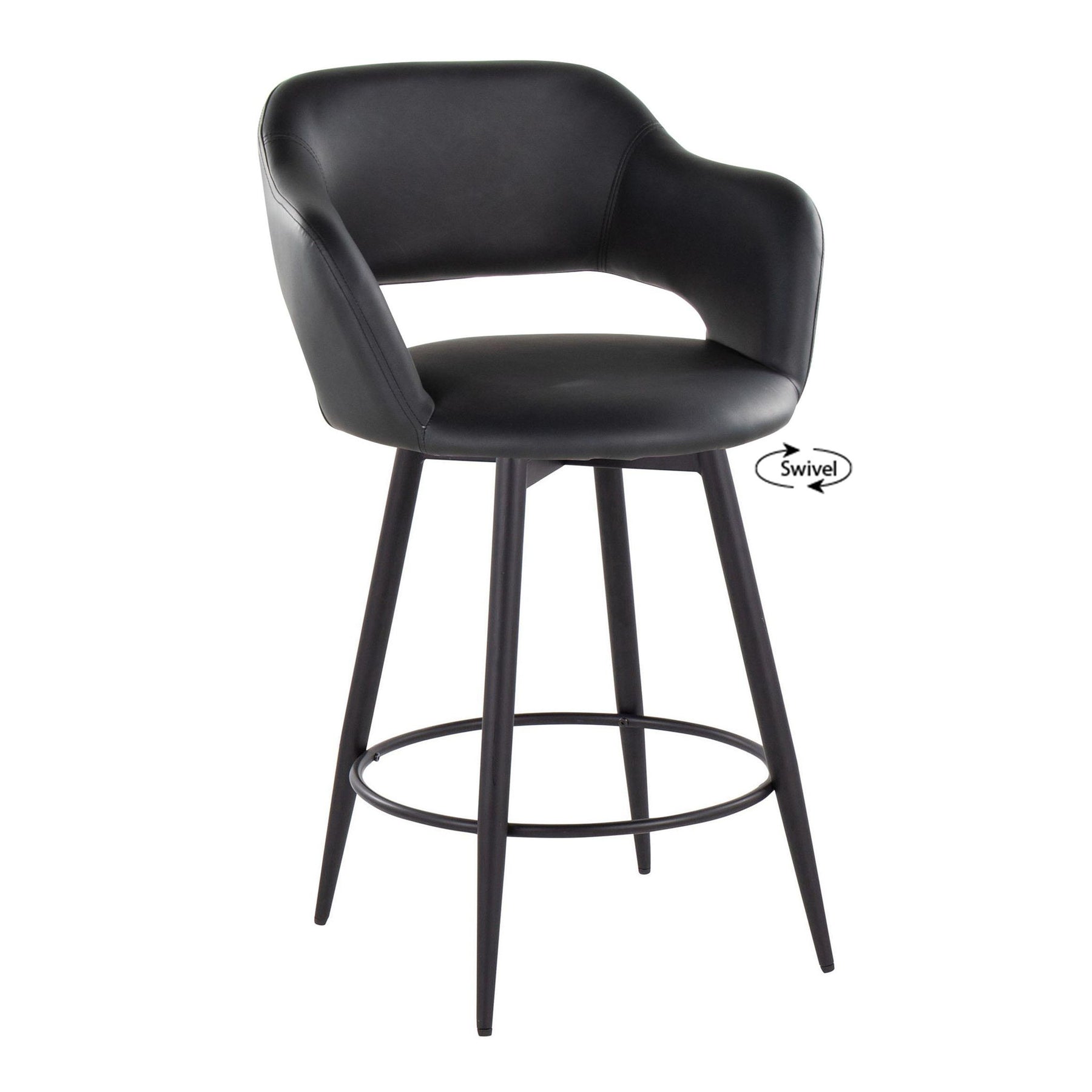 Margarite - Contemporary Fixed Height Counter Stool With Swivel With Round Footrest (Set of 2) - Matte Black