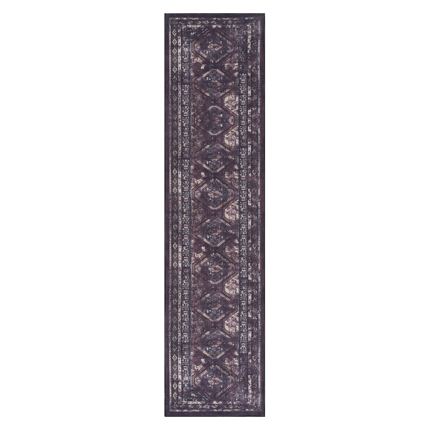 Maval - 2'6'' X 10' Washable Runner Rug - Black / Burgundy
