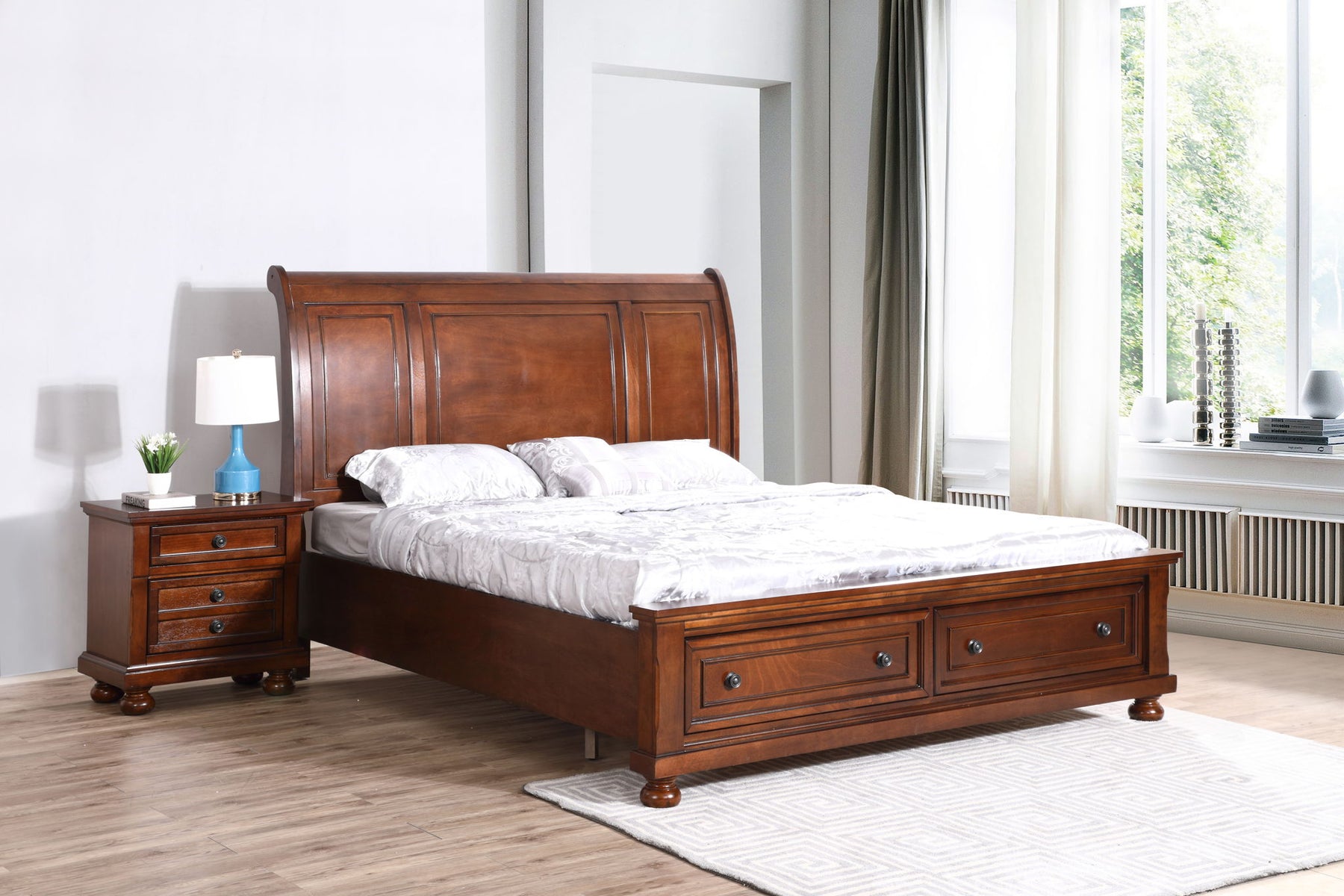 Meade - Queen Bed, Platform Frame, Storage Drawers And Full Extension Design - Dark Cherry