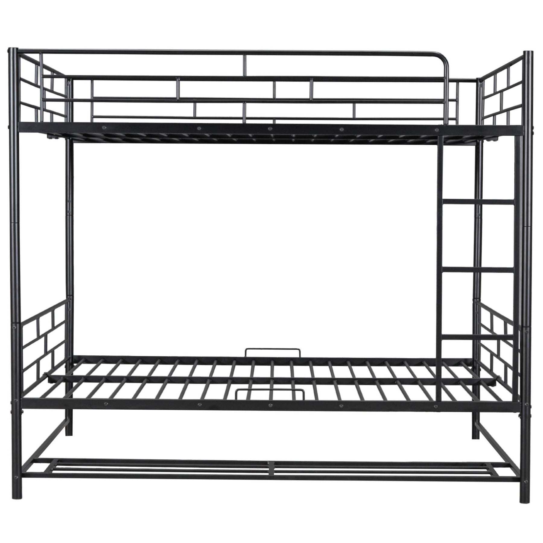 This metal bunk bed is made with sturdy metal and has a clean-cut silhouette that can be matched with any room decor. Designed with safety in mind, this bunk bed comes with a ladder integrated into the frame that is easy to climb up and down. With a practical design, this versatile bunk bed can be separated into two beds to meet your different needs.The shelf underneath the bunk bed creates extra space for you to stock shoes, boxes, toys or any small items you like. Some assembly is required, and the bed will definitely be assembled conveniently.