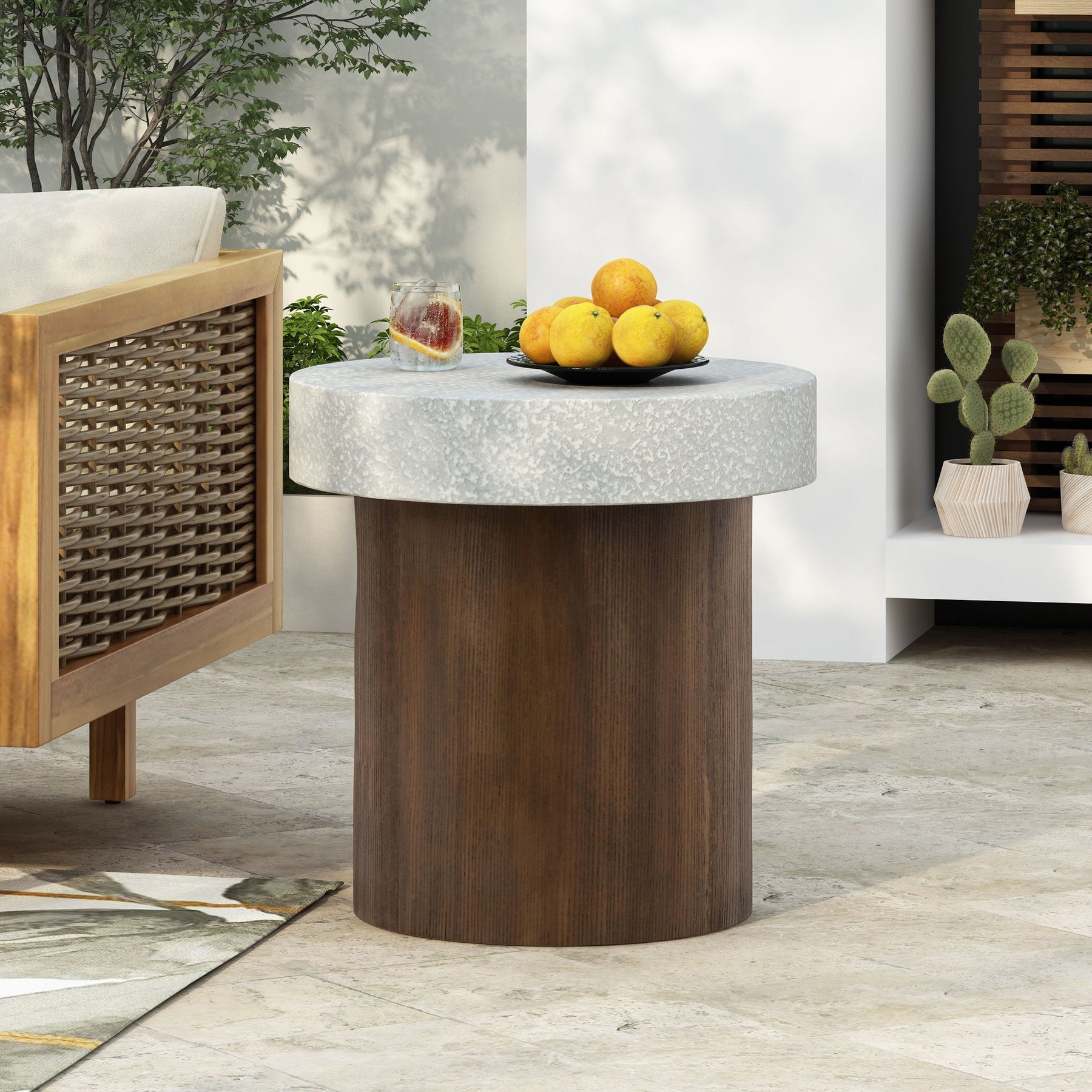 Mgo Cylindrical Side Table With Faux Stone Top And Wood Faux Base - Antique White / Natural