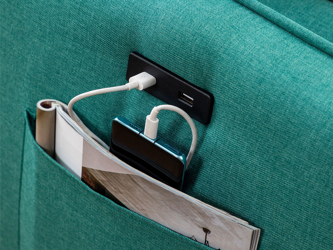 Mia - Sectional Sofa Chaise With USB Charger And Pillows - Green