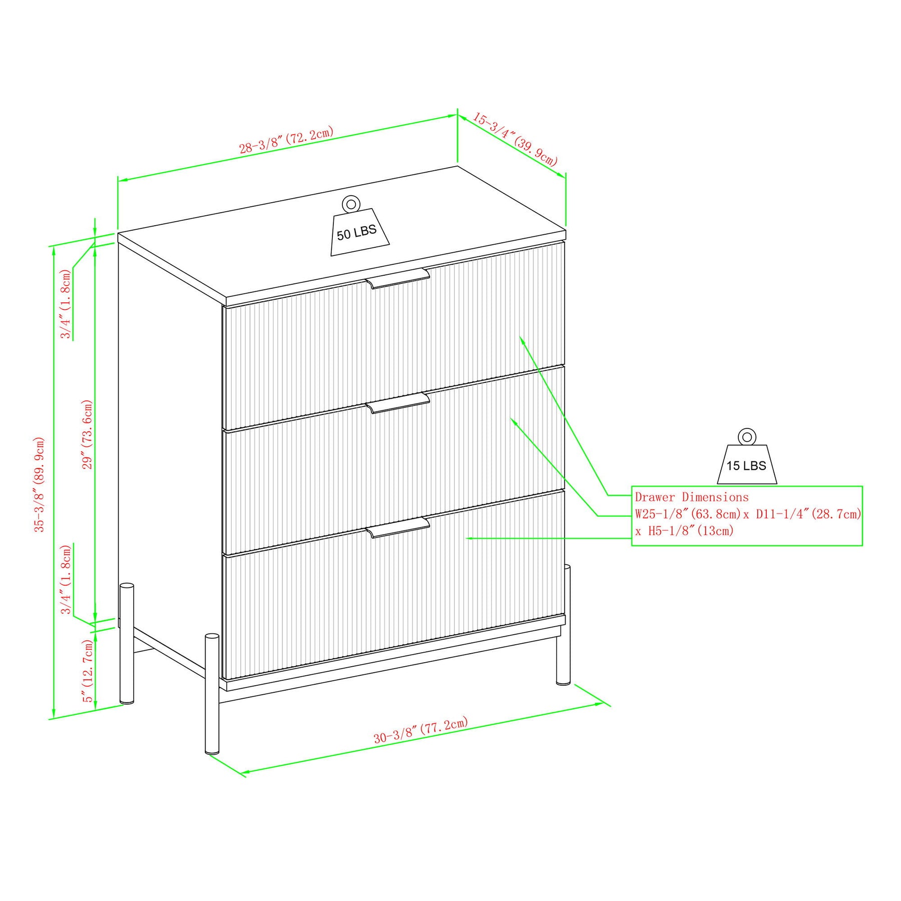 - Metal drawer glides