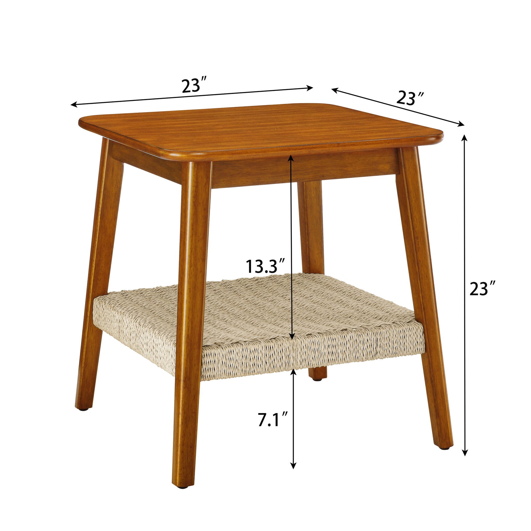 Mid - Century Square Side Table With Woven Shelf - Walnut