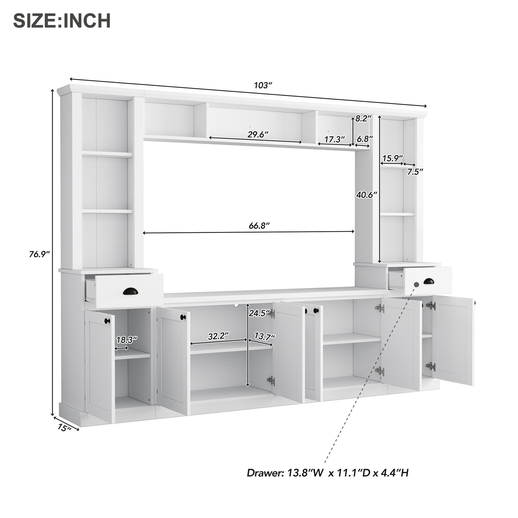 Minimalist - Entertainment Wall Unit Set With Bridge For TVs Up To 75", Ample Storage Space TV Stand With Adjustable Shelves - White