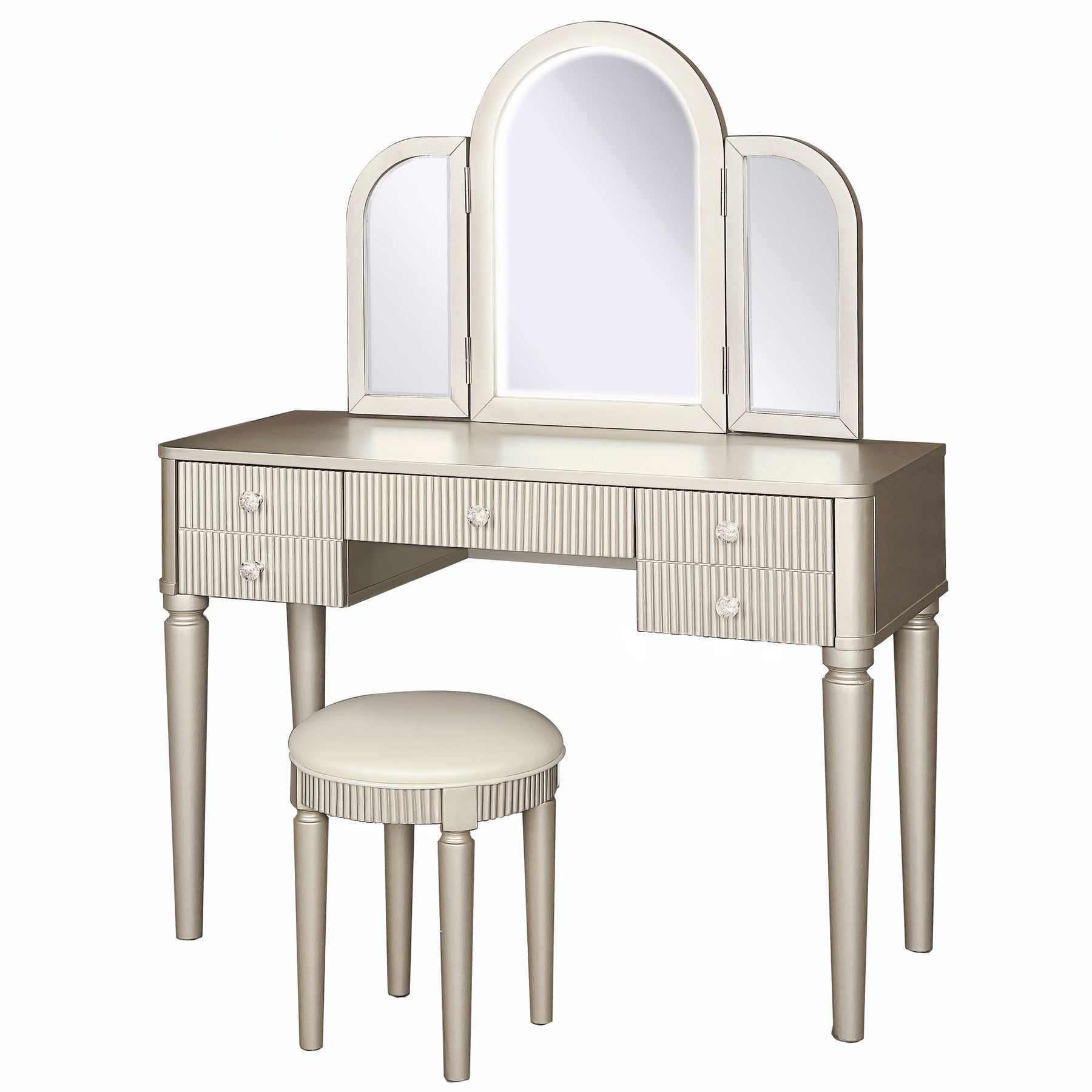 Mirrored Vanity With LED Light,Makeup Vanity Table Set - Champagne