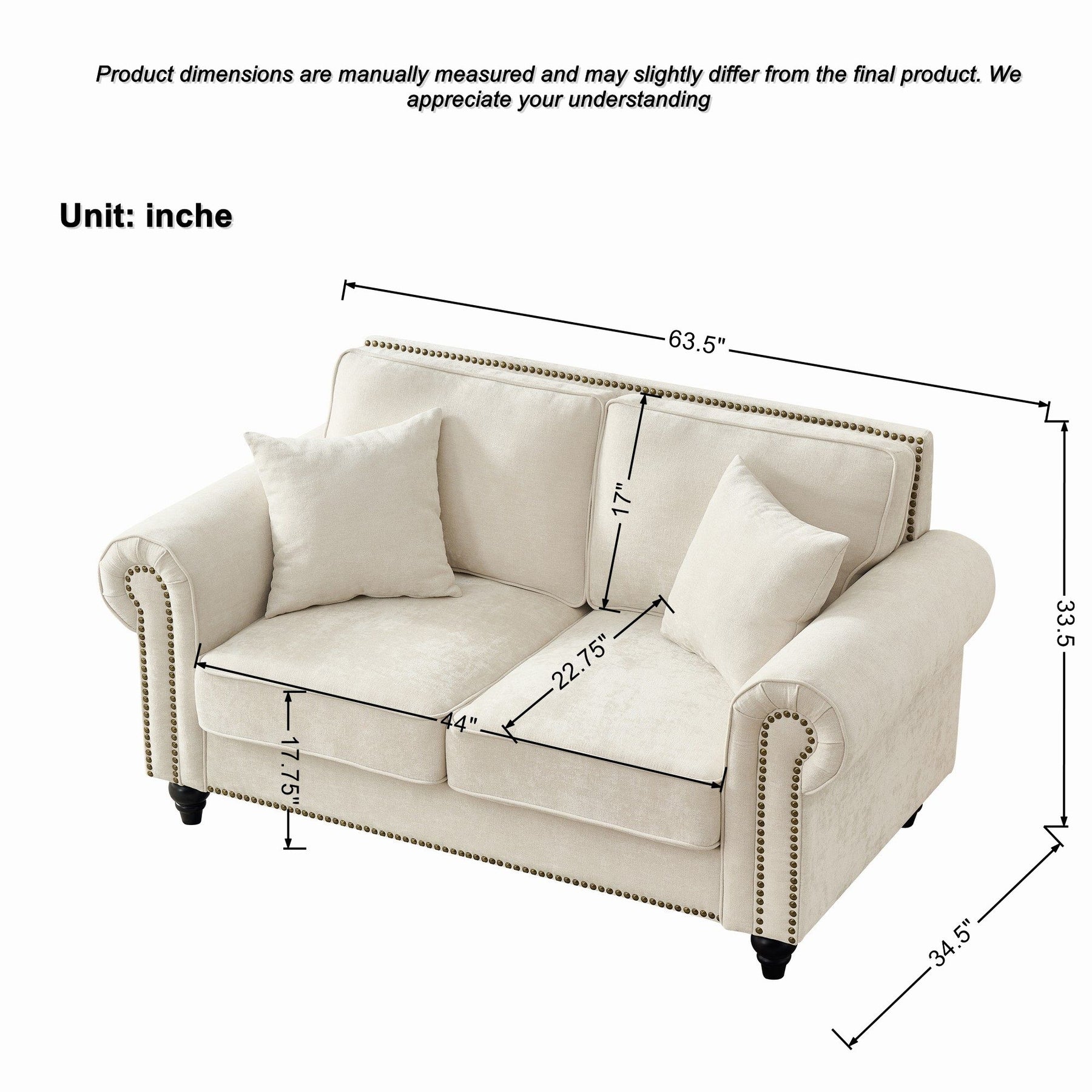 3 And 2 Seater Sofa With Rolled Arms And Nailhead Trim Upholstered Couch With Legs - Beige