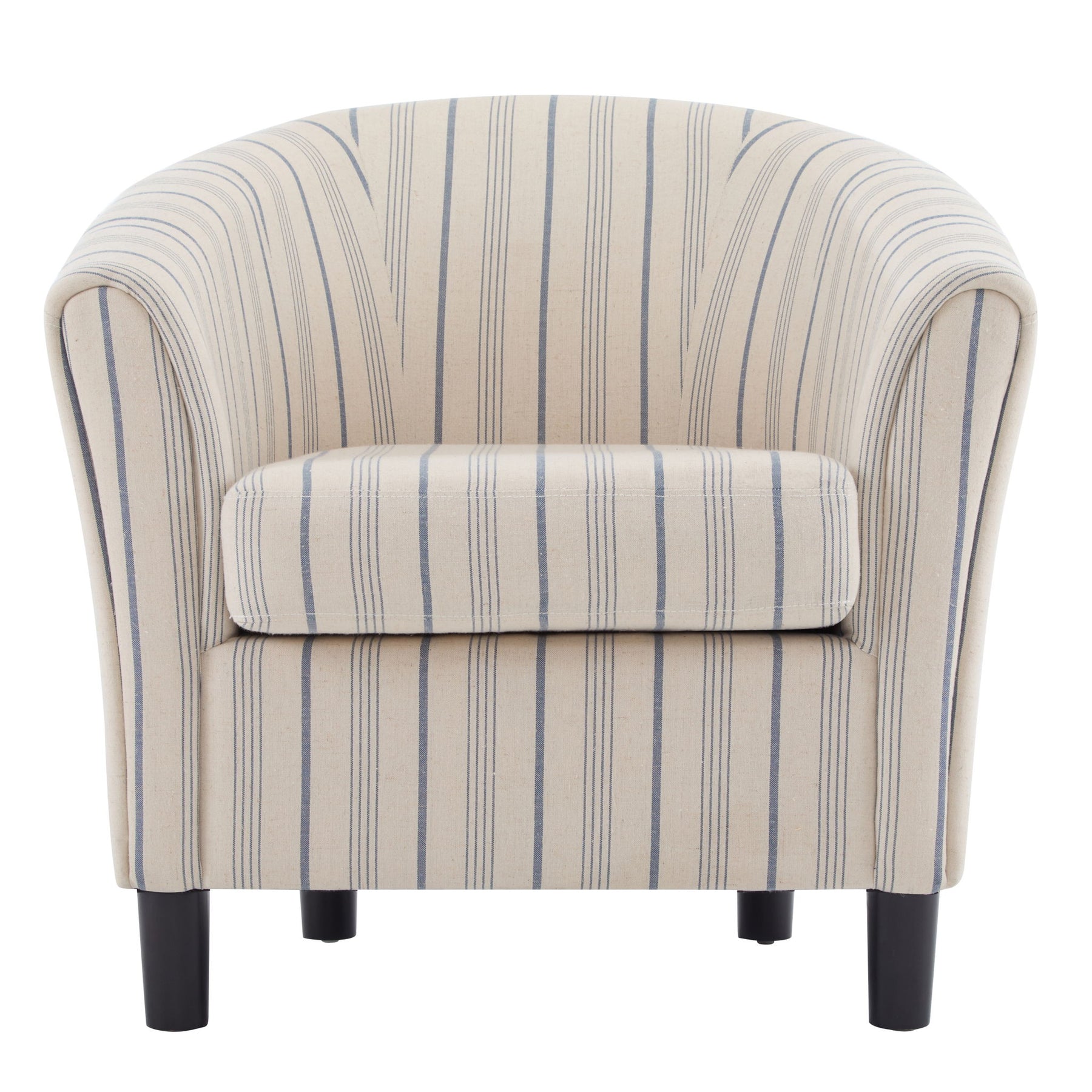 Modern Barrel Fabric Striped Barrel Chair With Channel Stitching - Beige / Blue Stripe