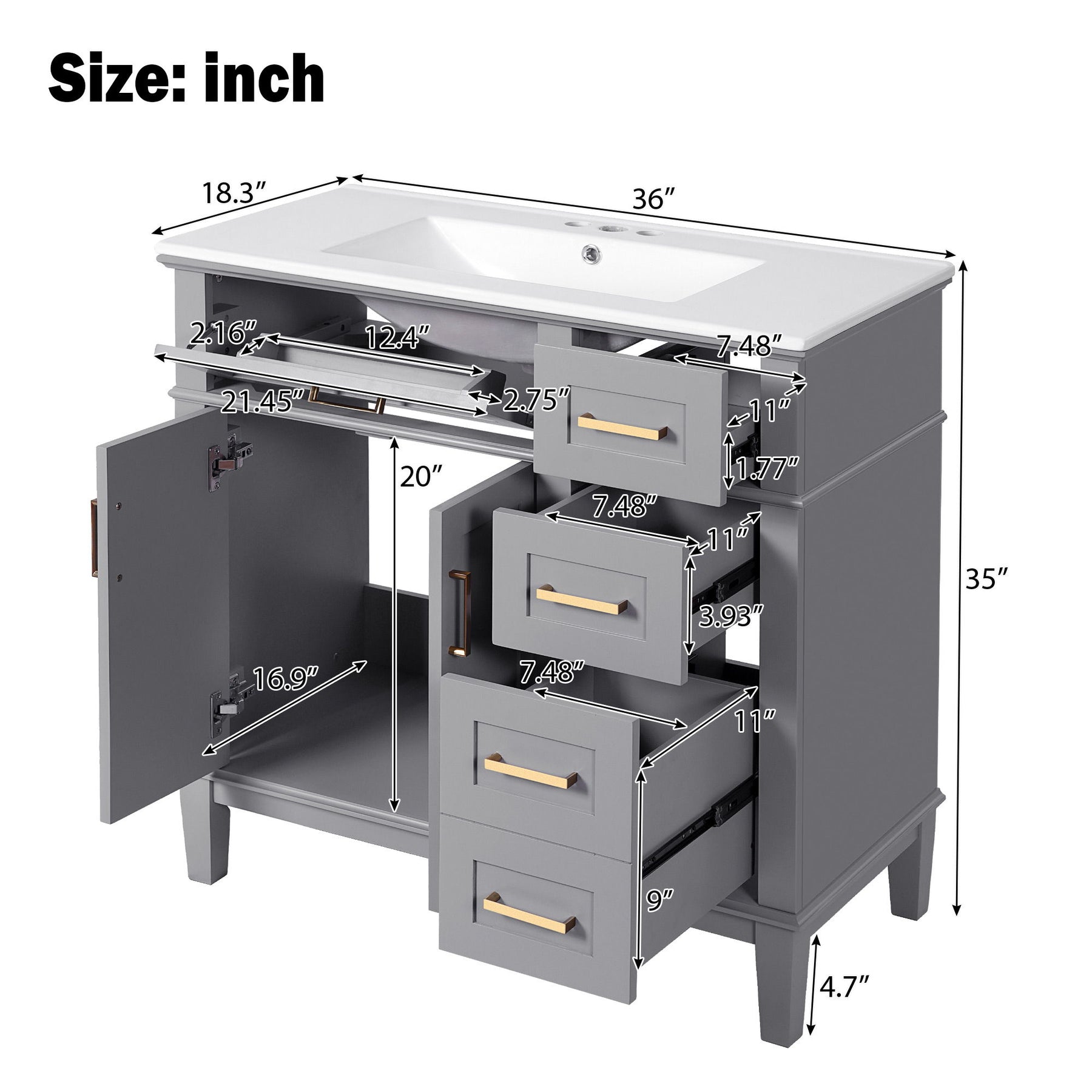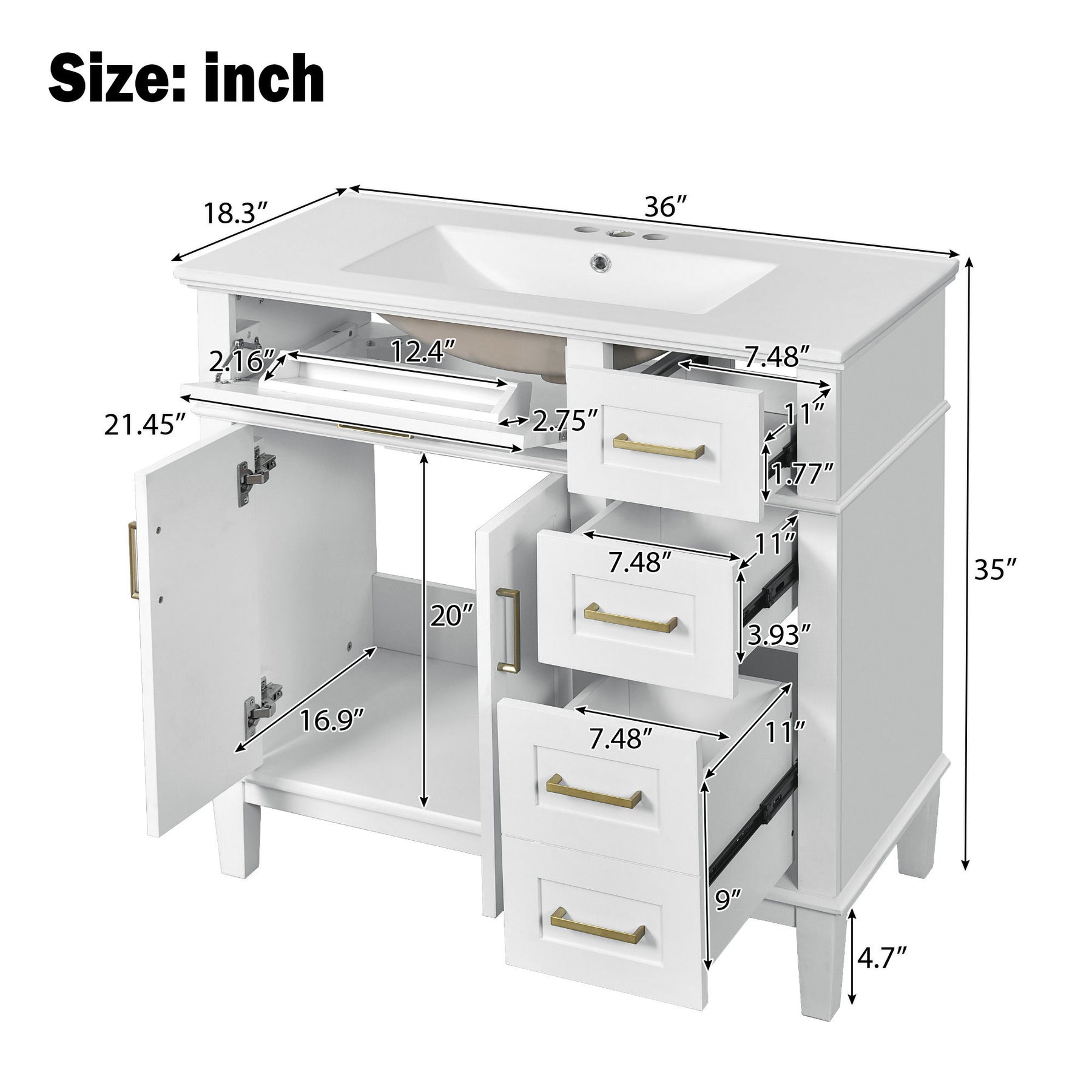 Bathroom Vanity With Sink, Soft Close Doors, And Storage Drawers, 36" - White