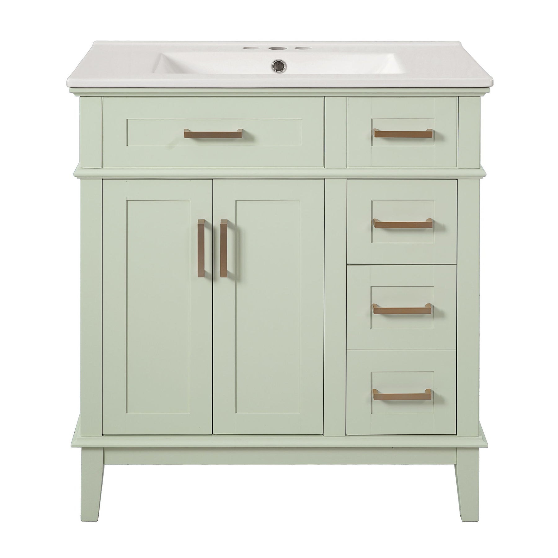30" Bathroom Vanity With Sink, Soft Close Doors, Deep & Standard Drawer, & - Green