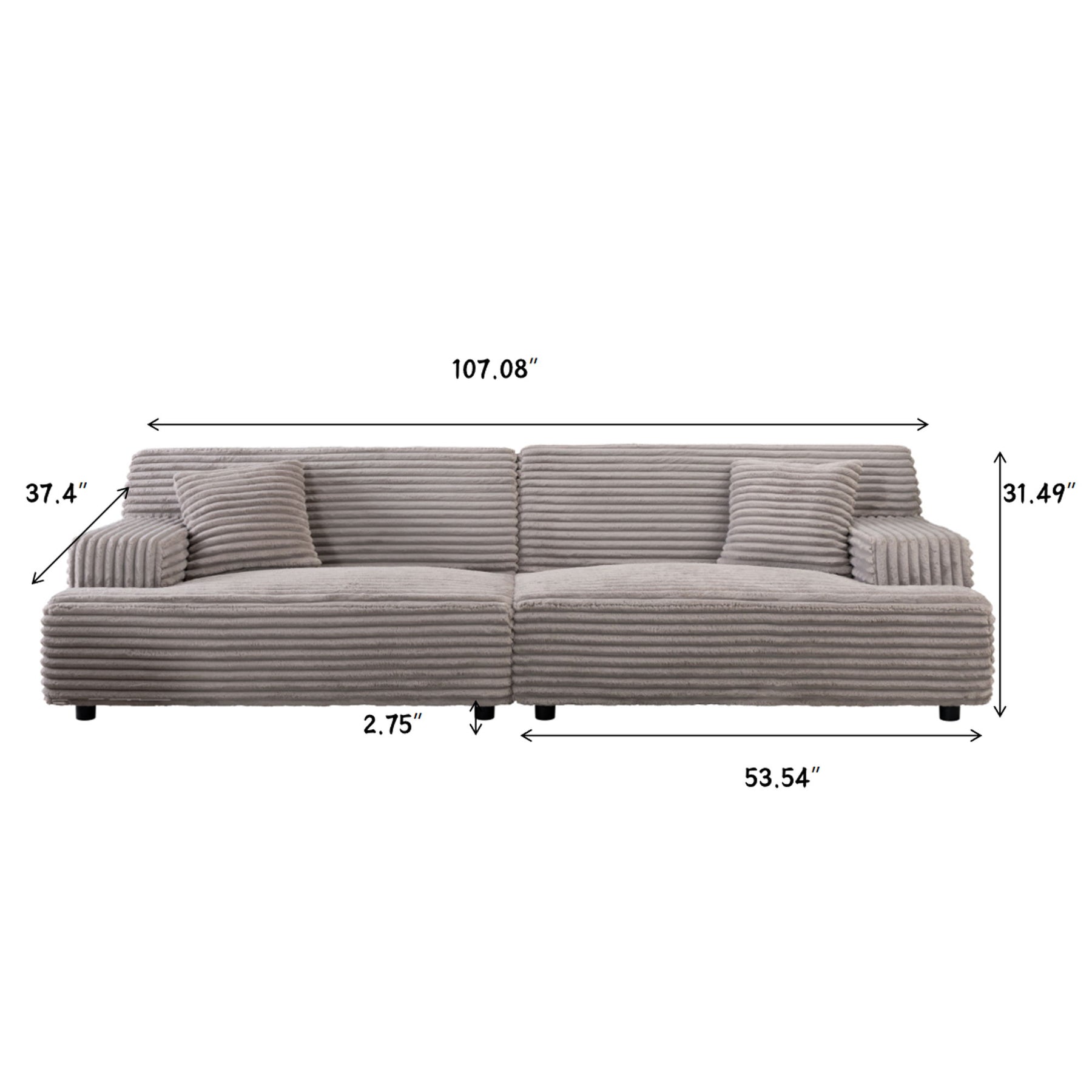 Modern 2291-G Sofa, Comfortable Cloud Sofa, Soft Plush Corduroy Interior With Square Armrests, Living Room Or Bedroom - Gray