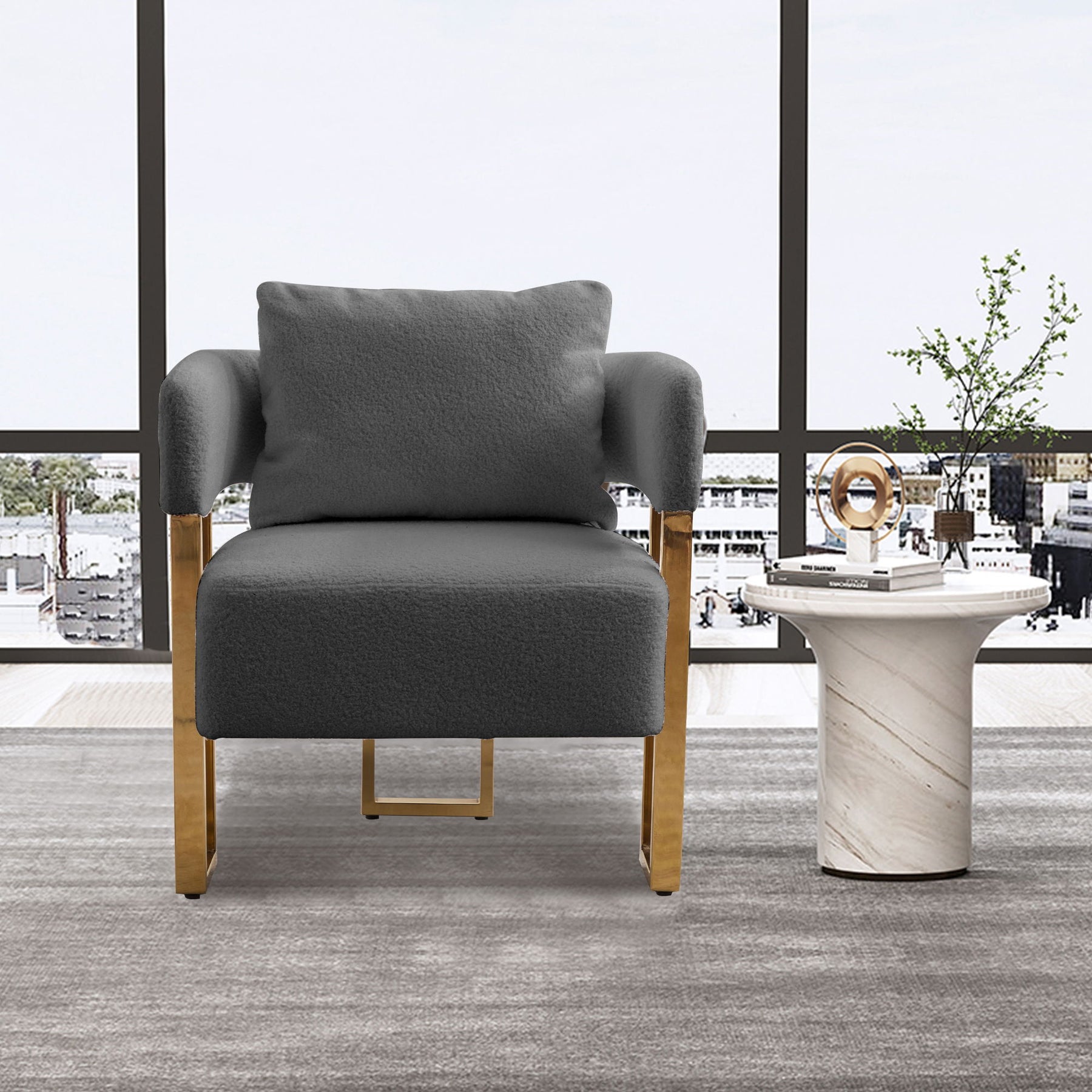 Modern Decorative Chair Teddy Fleece Upholstered And Metal Foot
