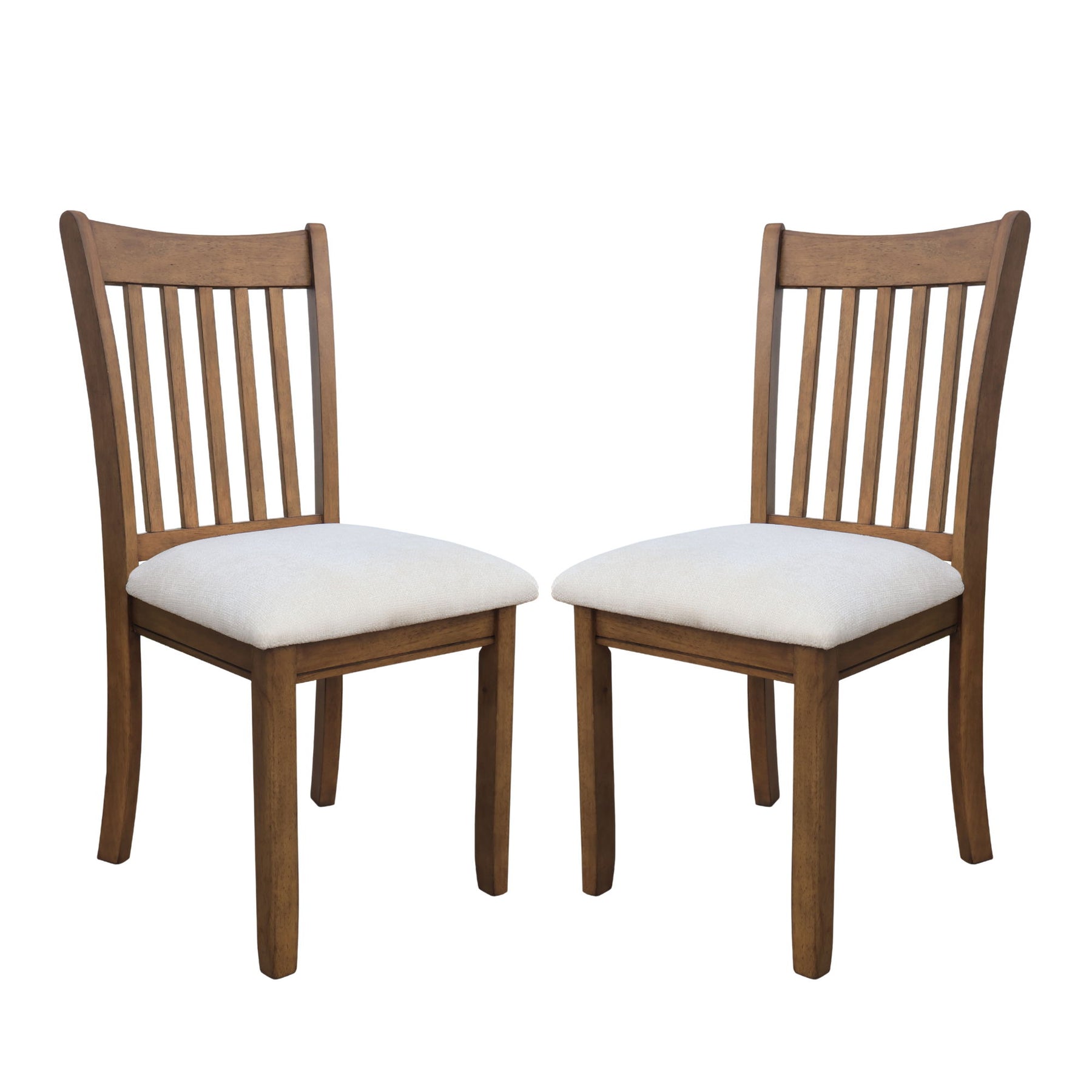 Modern Dining Chair (Set of 2) Wooden Back, Cushion Seats, Frame - Light Brown