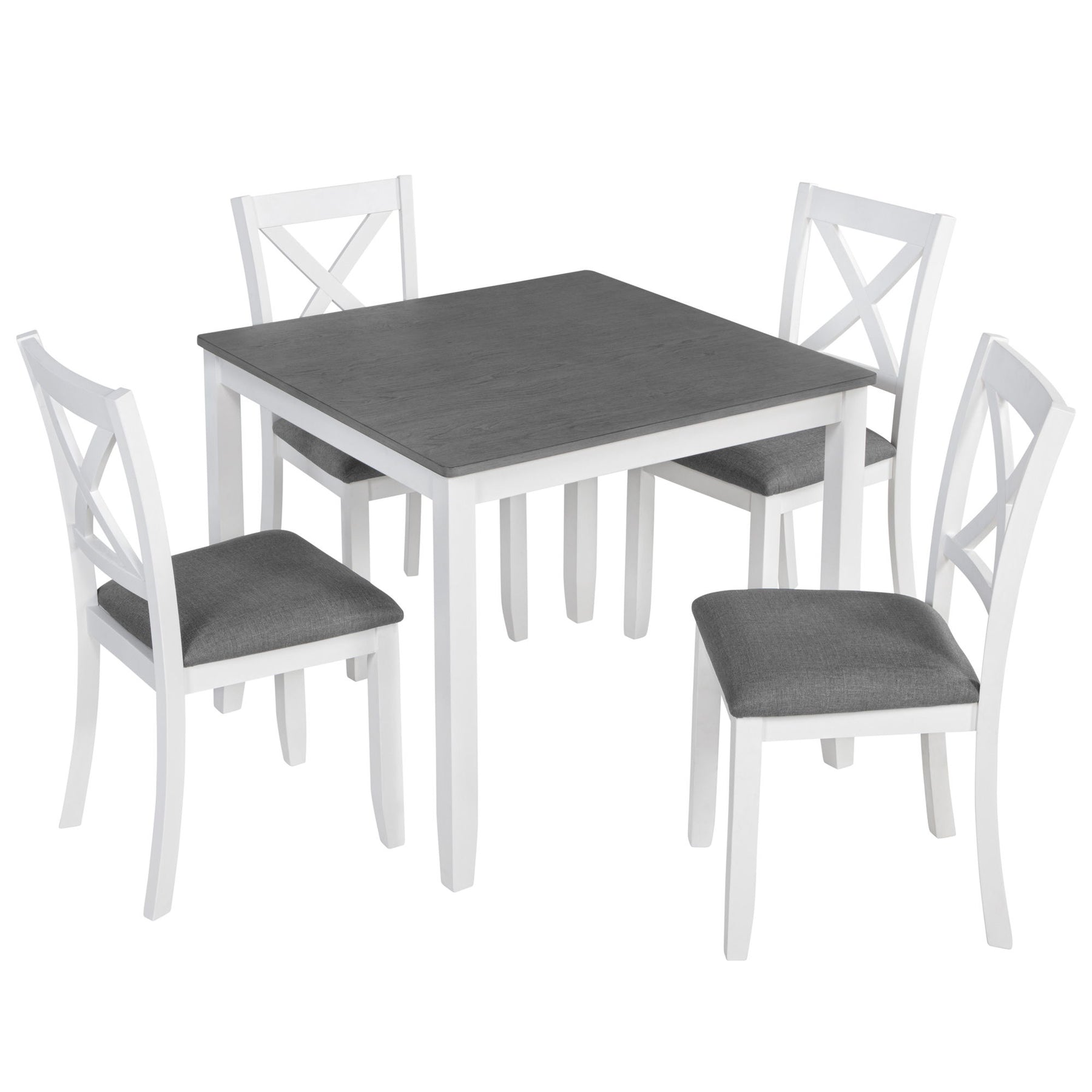 Modern 5 Piece Dining Table Set With 4 Chairs For Kitchen Or Dining Room - Gray / White