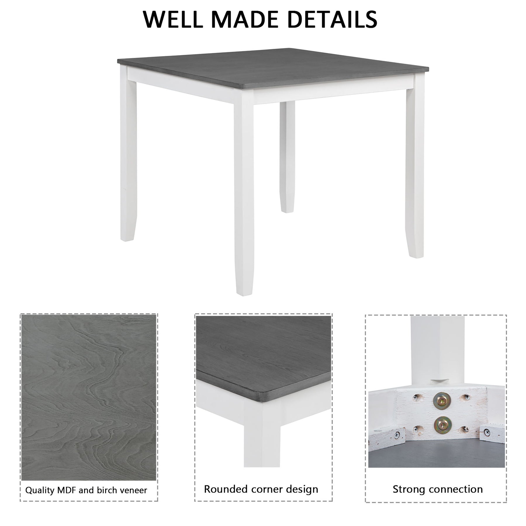 - Dining Table Set: Includes one square dining table and four chairs; designed to comfortably seat up to four people for daily meals or gatherings.