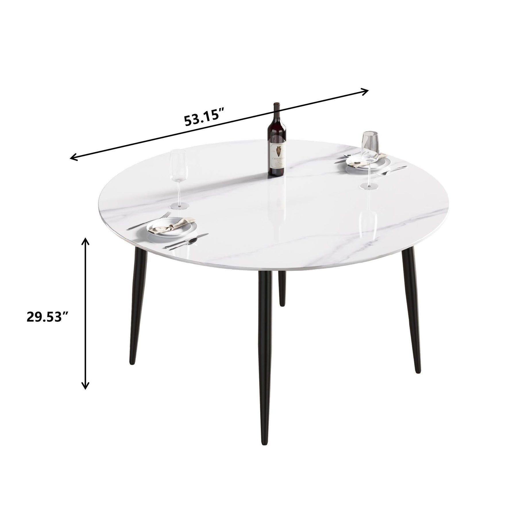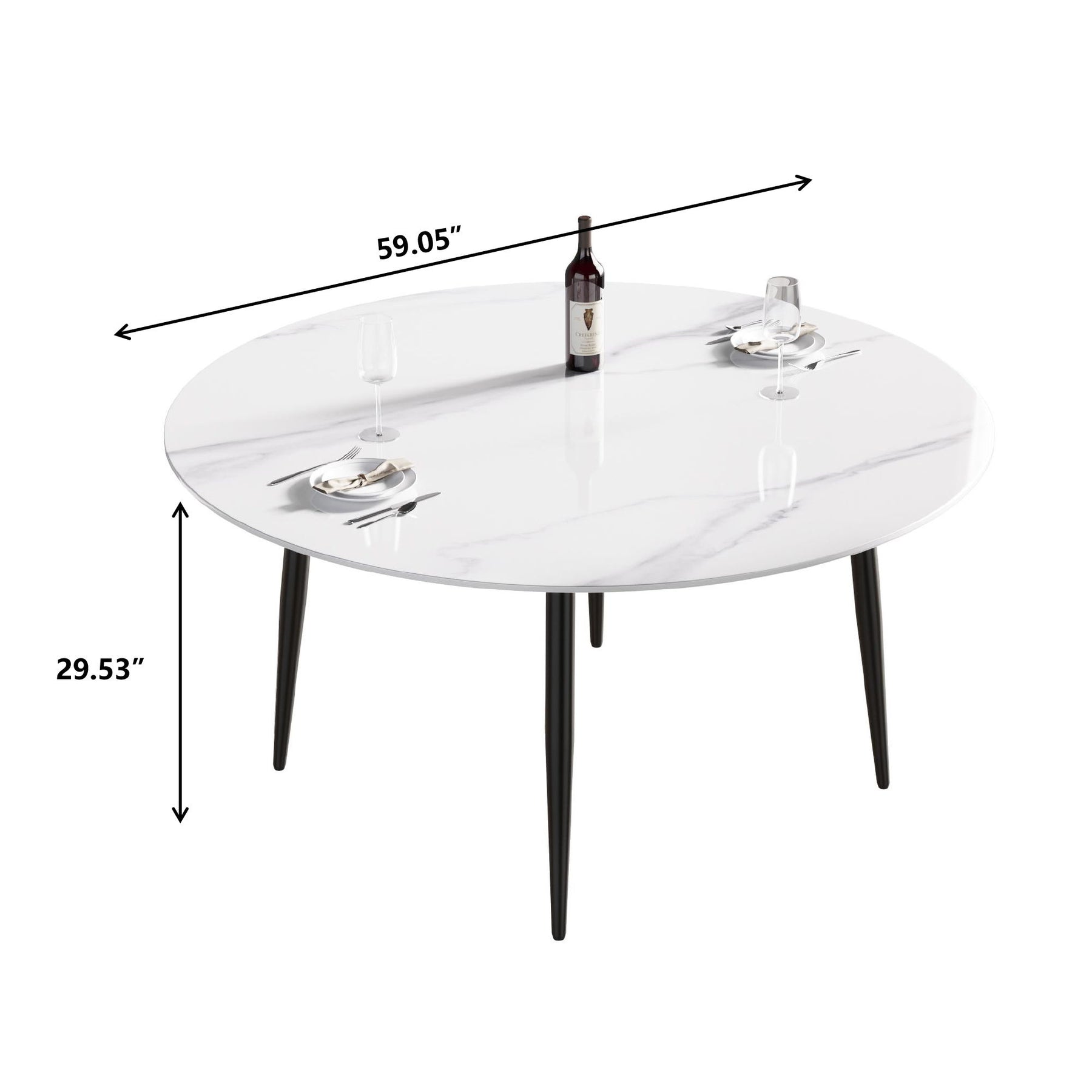59.05" Modern Man-Made Stone Round Metal Dining Table-Position For 6 People - White / Black