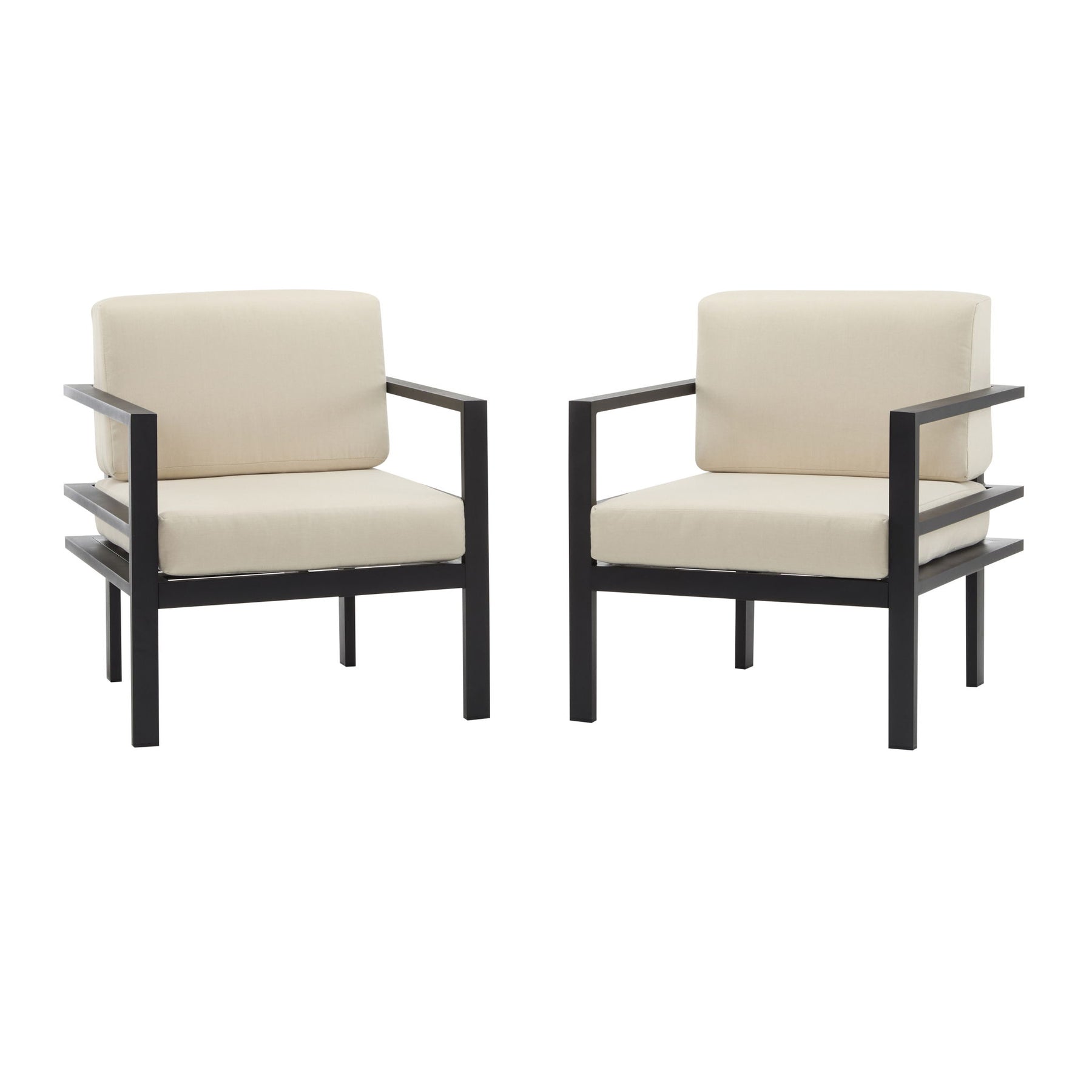 Modern Outdoor Lounge Chair (Set of 2) With Aluminum Frame And Weather Resistant Cushions - Beige / Black