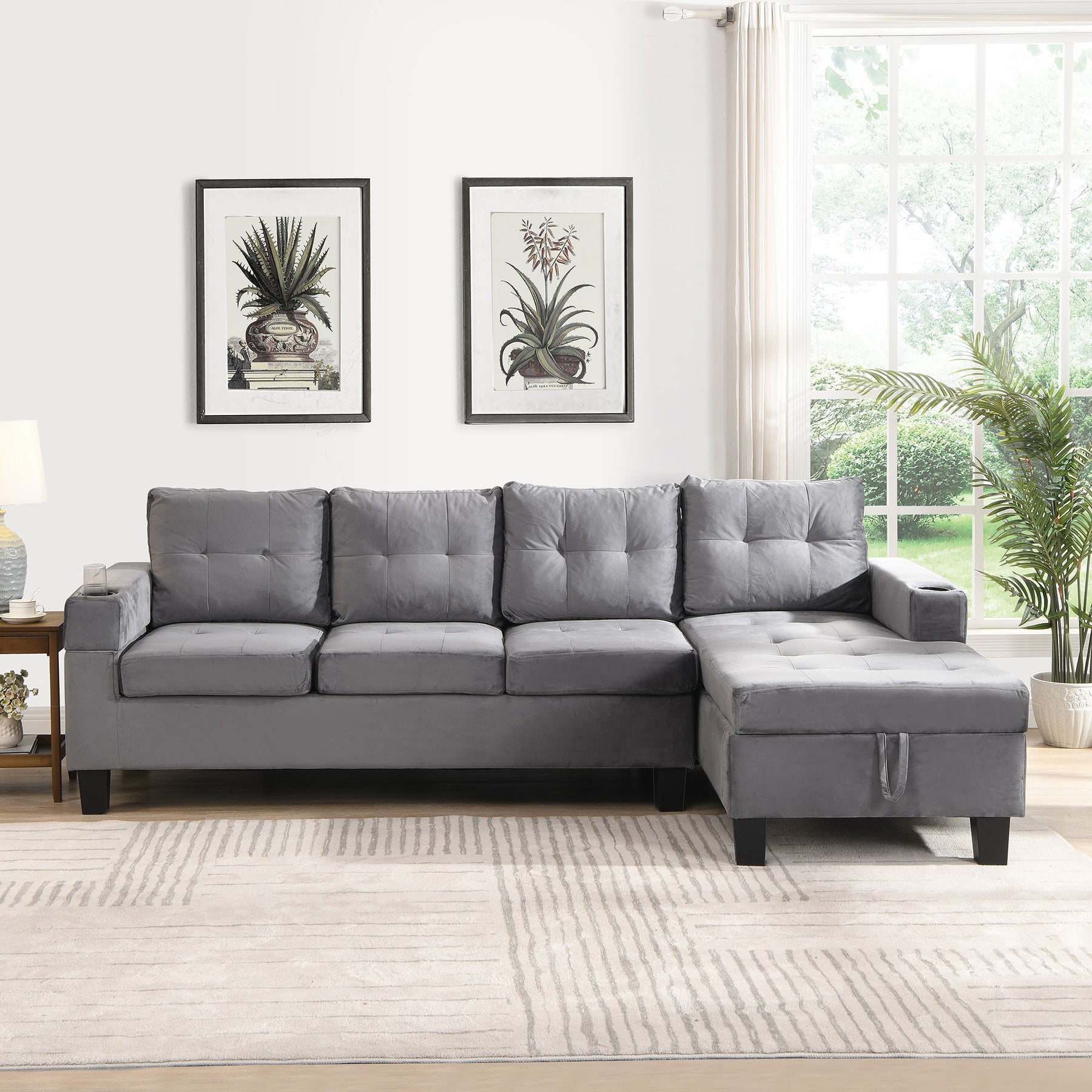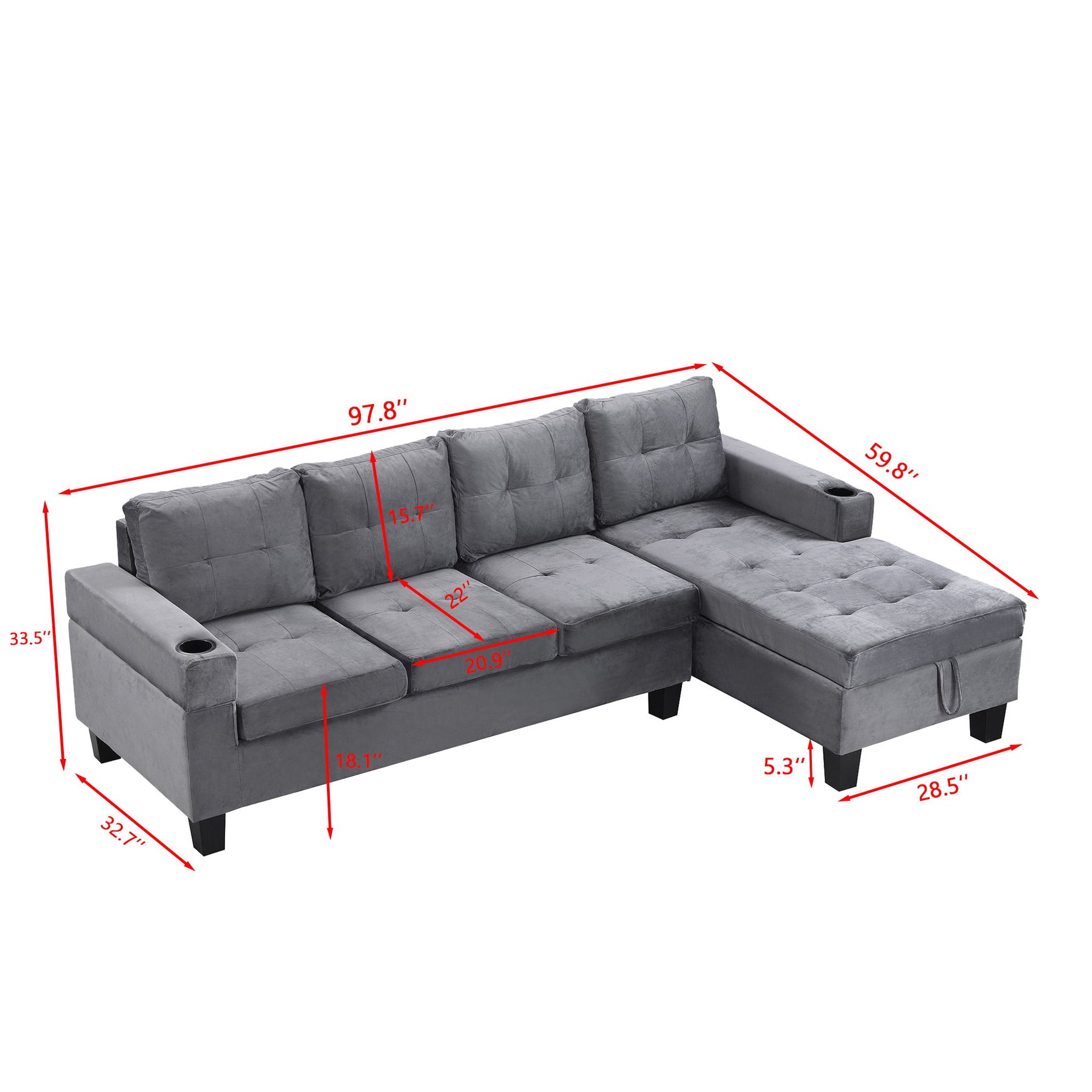 Modern Sectional Sofa Set With L Shape Chaise Lounge And Storage