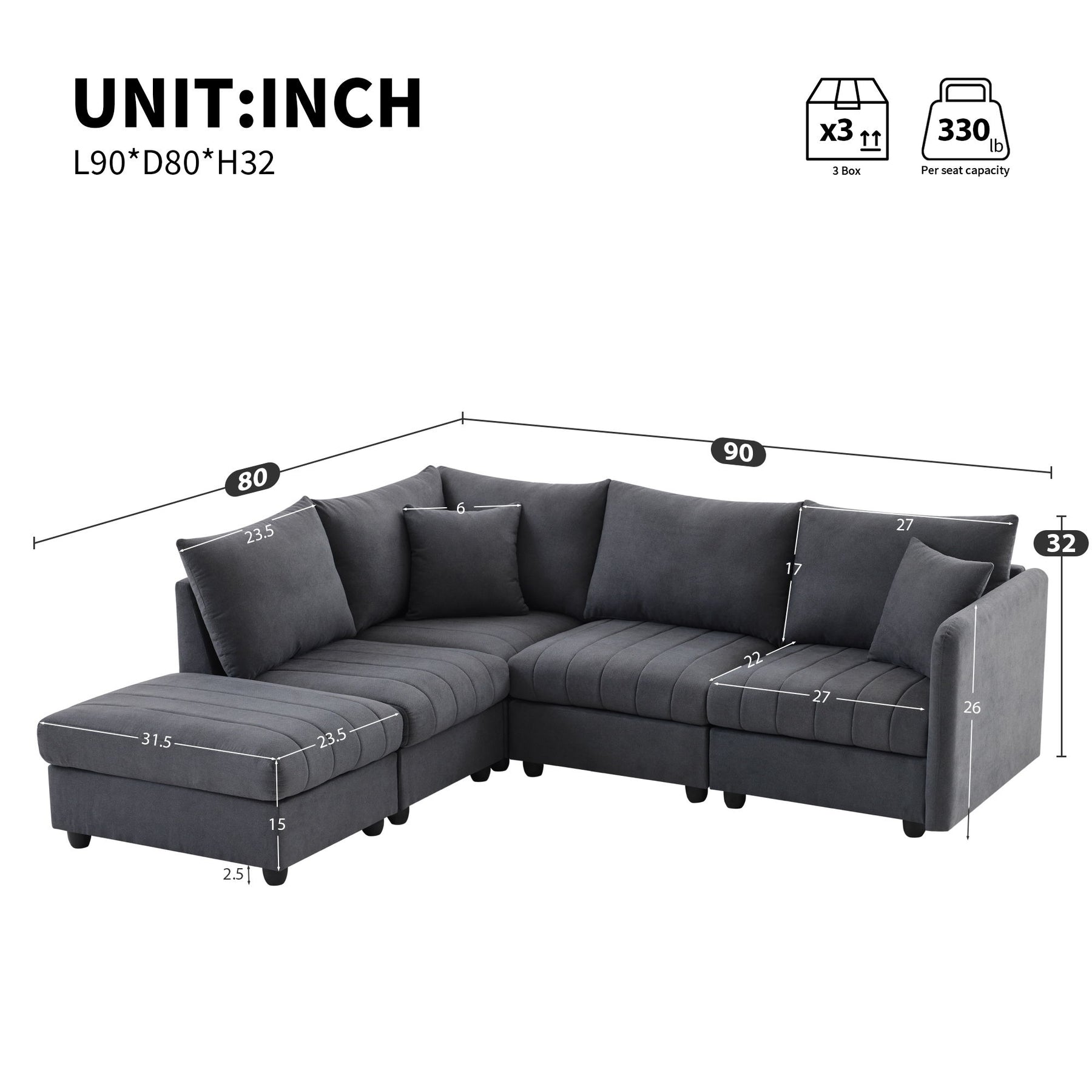 89.0"W x 79.0"D x 32.0"H - 204.6 lb