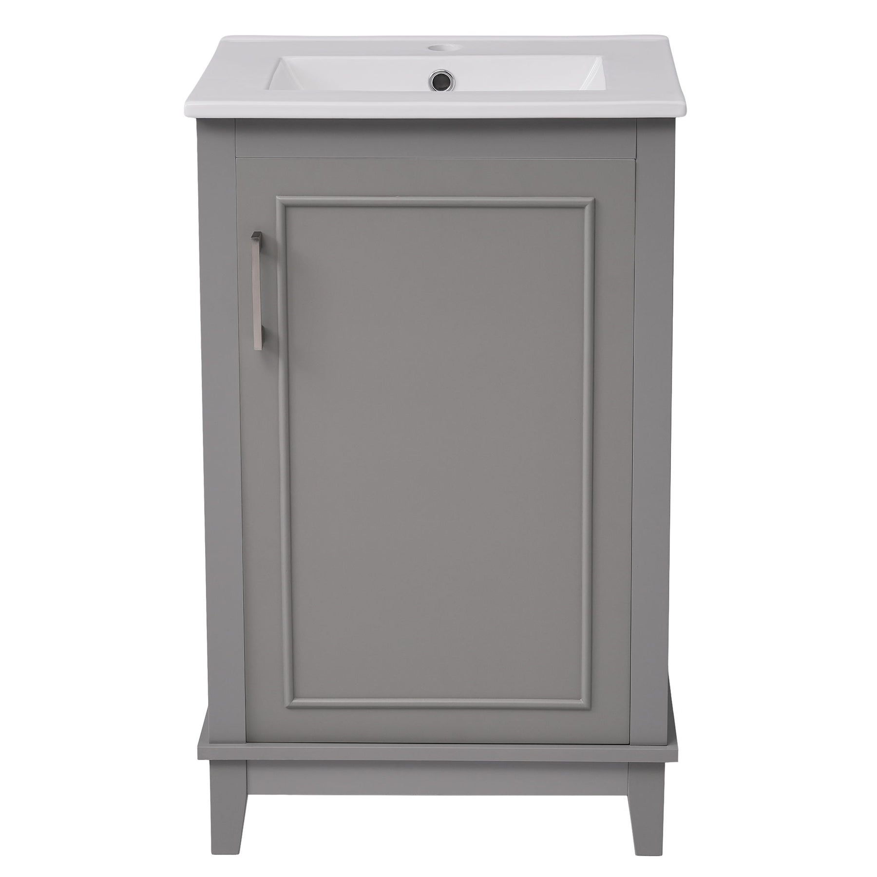 Modern Small Bathroom Vanity Cabinet With Ceramic Basin, Ample Storage, 1 Soft-Close Door - Gray