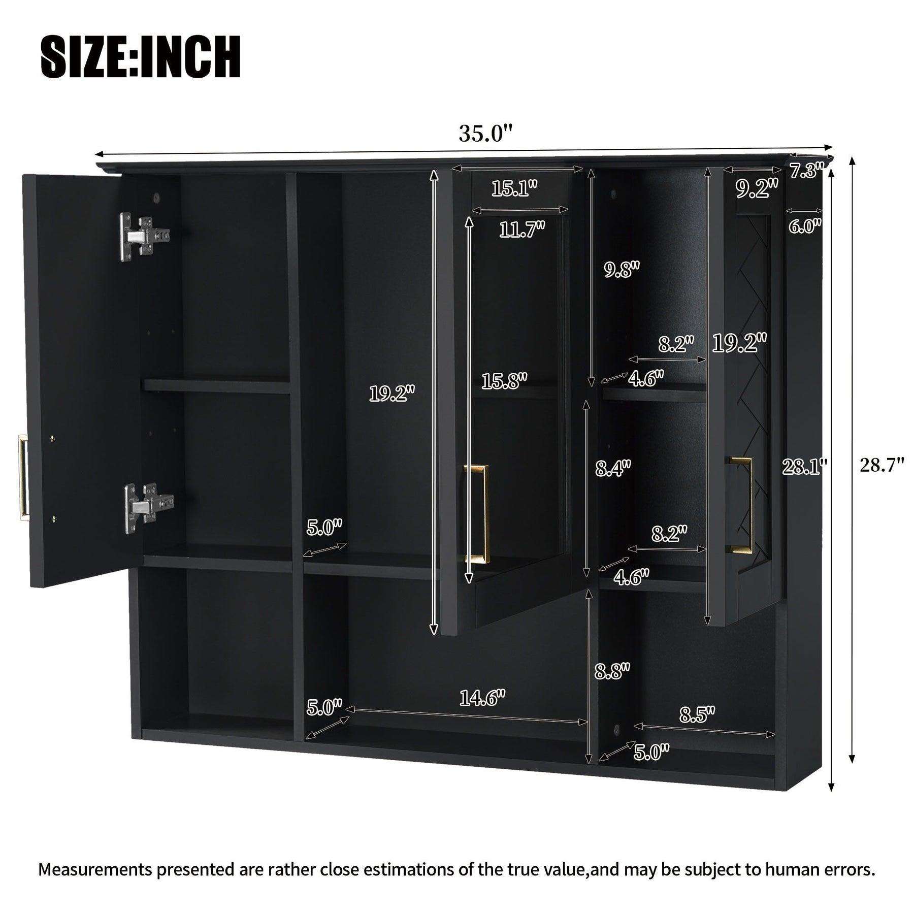 Wall Mounted Medicine Cabinet With Adjustable Shelves, Soft Close Doors, High Define Mirror - Black