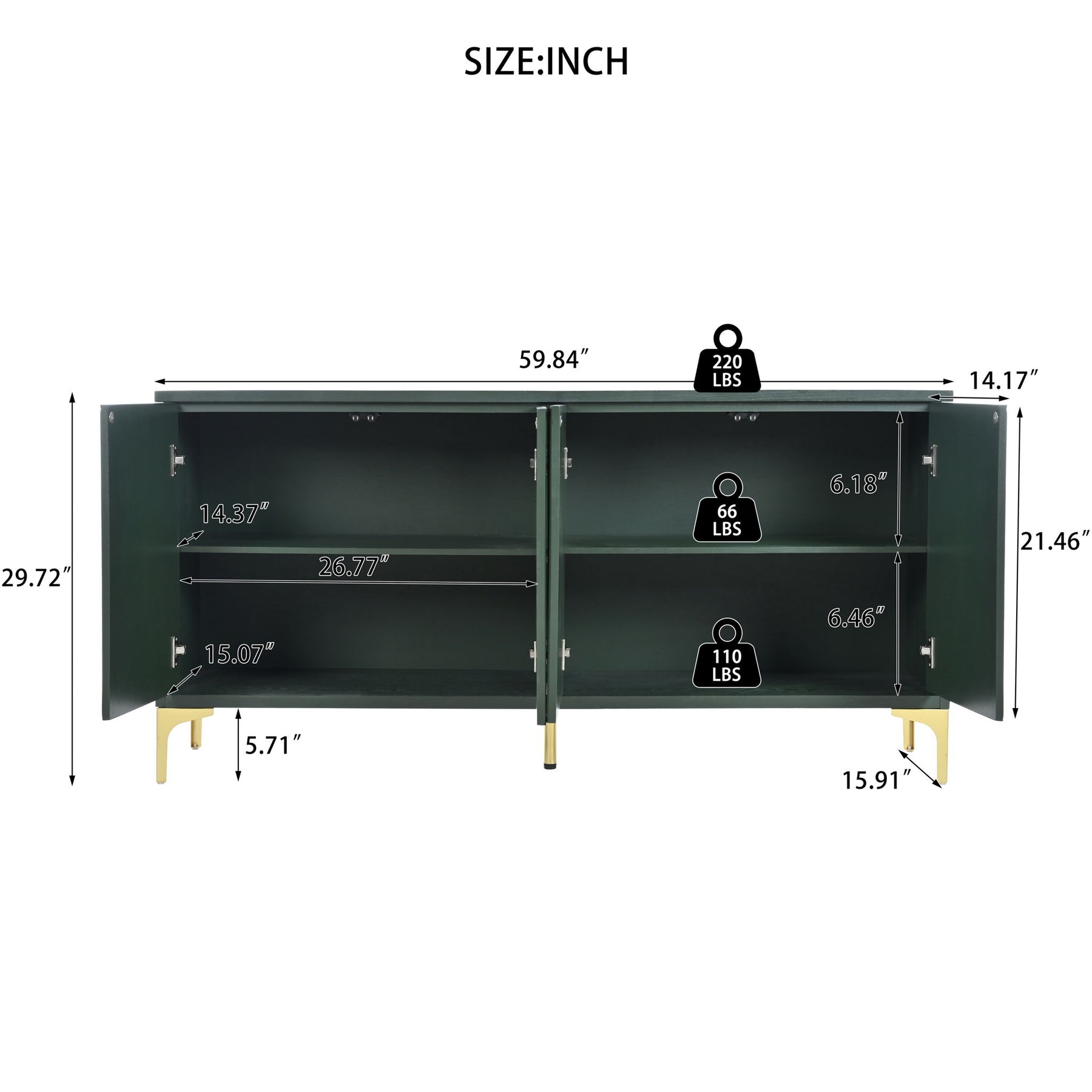 Modern Light Luxury Style Large Storage Space Sideboard With 4 Doors And Rebound Device - Olive Green
