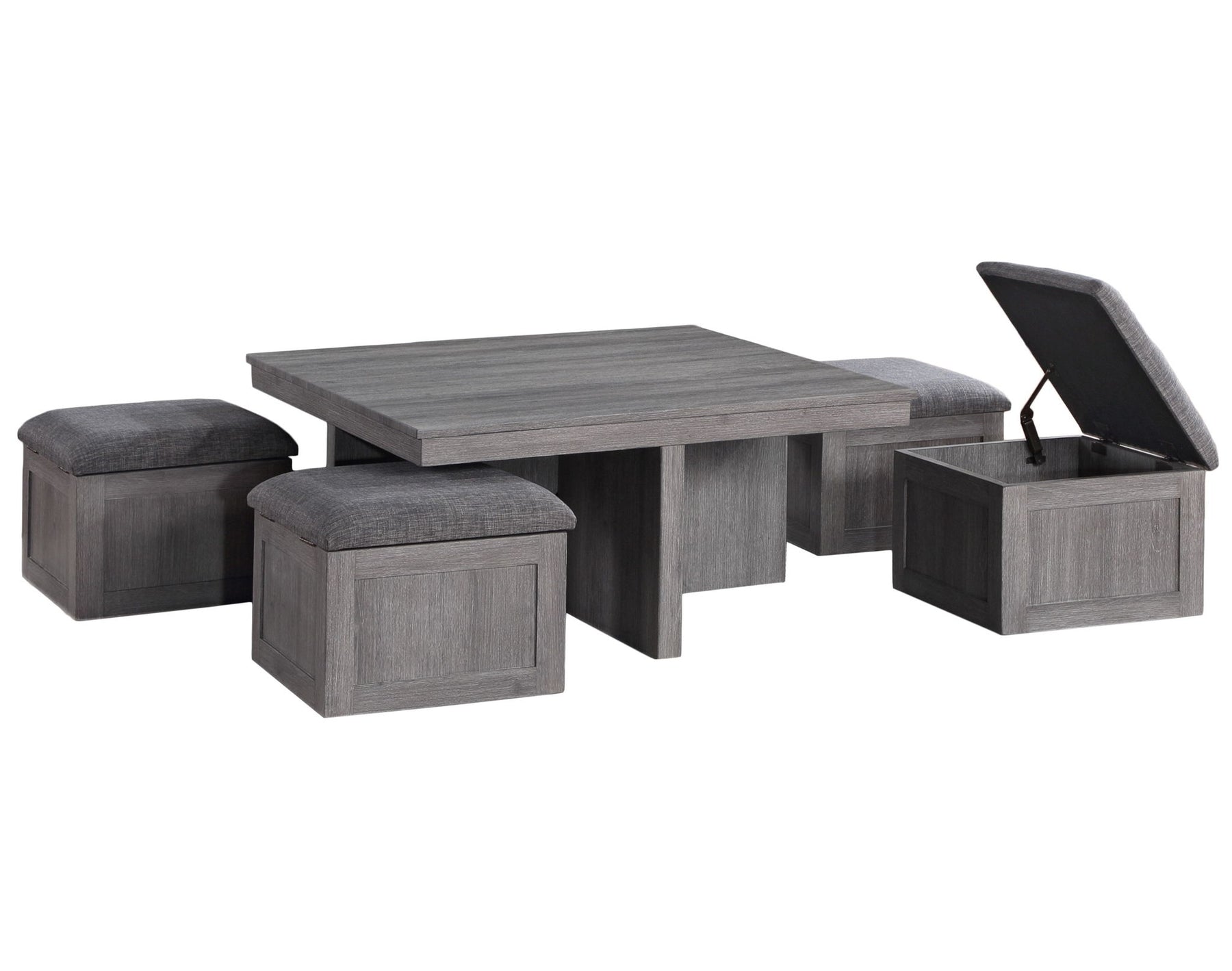 Moseberg - Oak Coffee Table With Storage Stools (Set of 5) - Gray