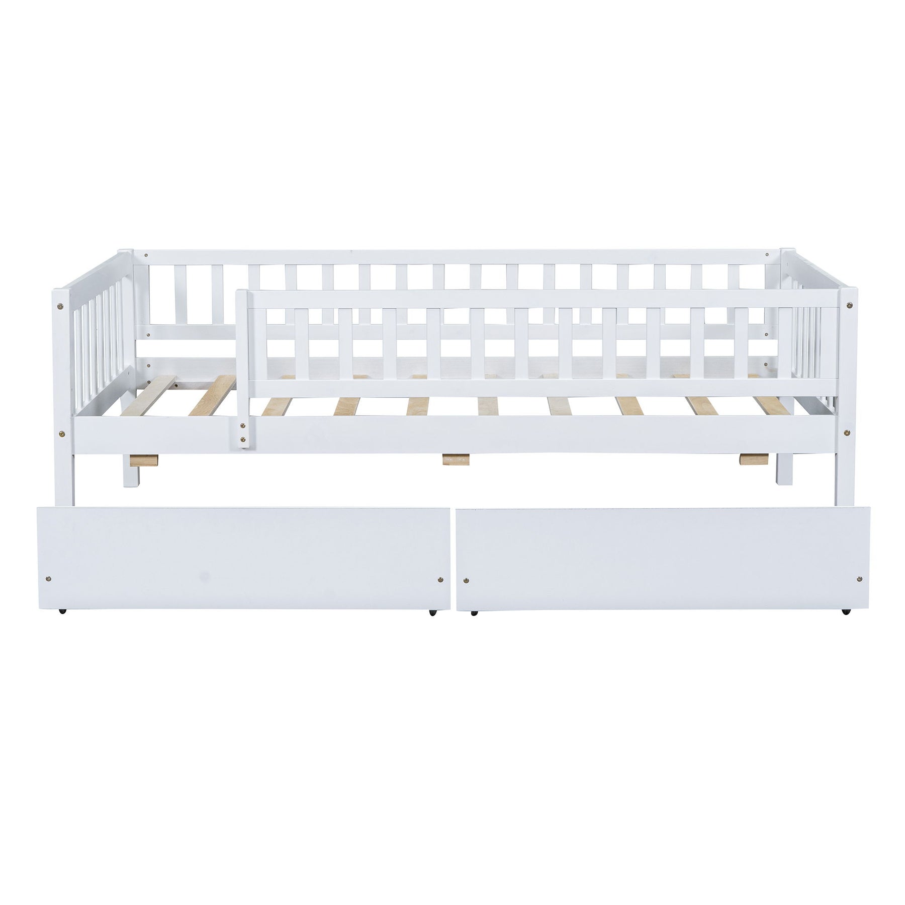 Twin Size Daybed With Trundle And Fence Guardrails - White