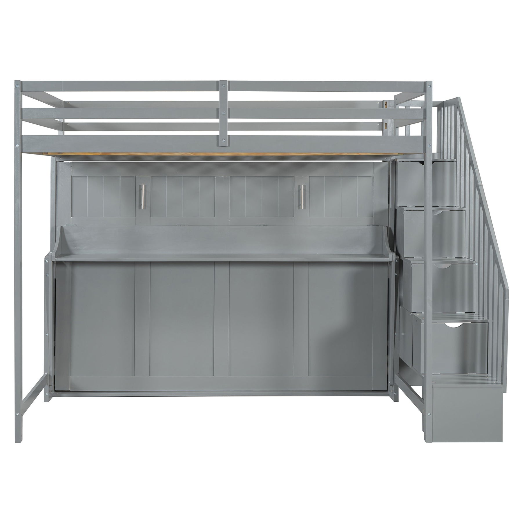 Full Over Full Size Murphy Bed With Hydraulic Lift & Desk Design - Gray