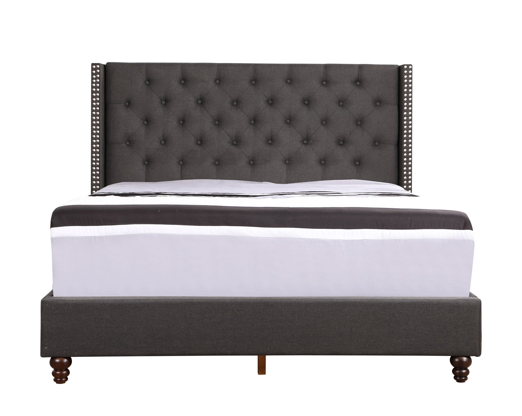 • Deep Tufting and Nailhead Trim: Upholstered bed features elegant deep tufting and hand-applied nailhead trim for a luxurious look.
