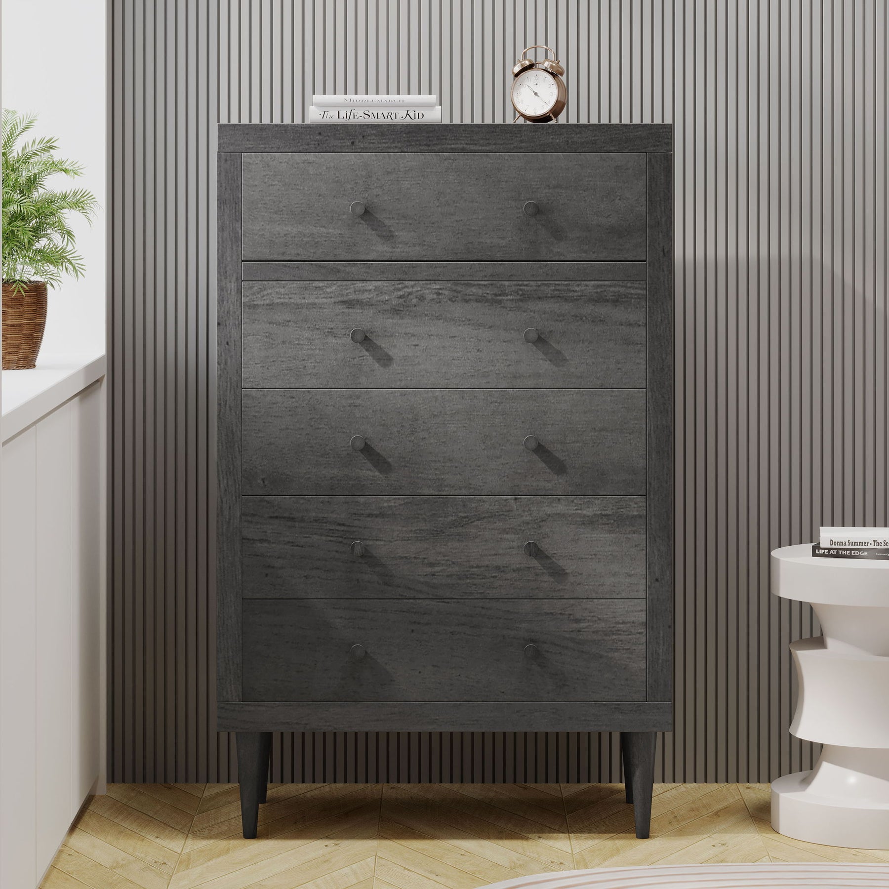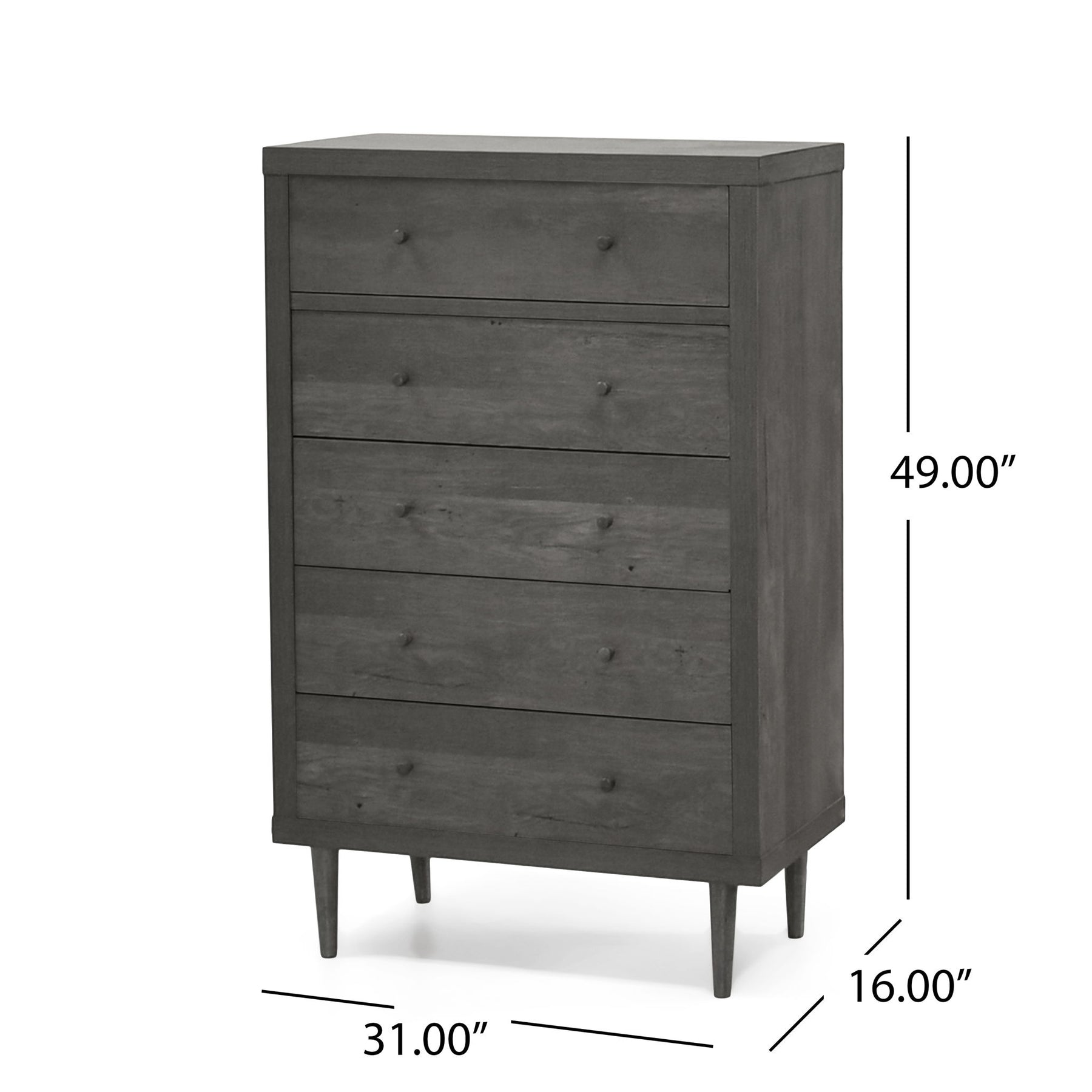 Nystrom - Mid Century Modern 5 Drawer Dresse - Gray
