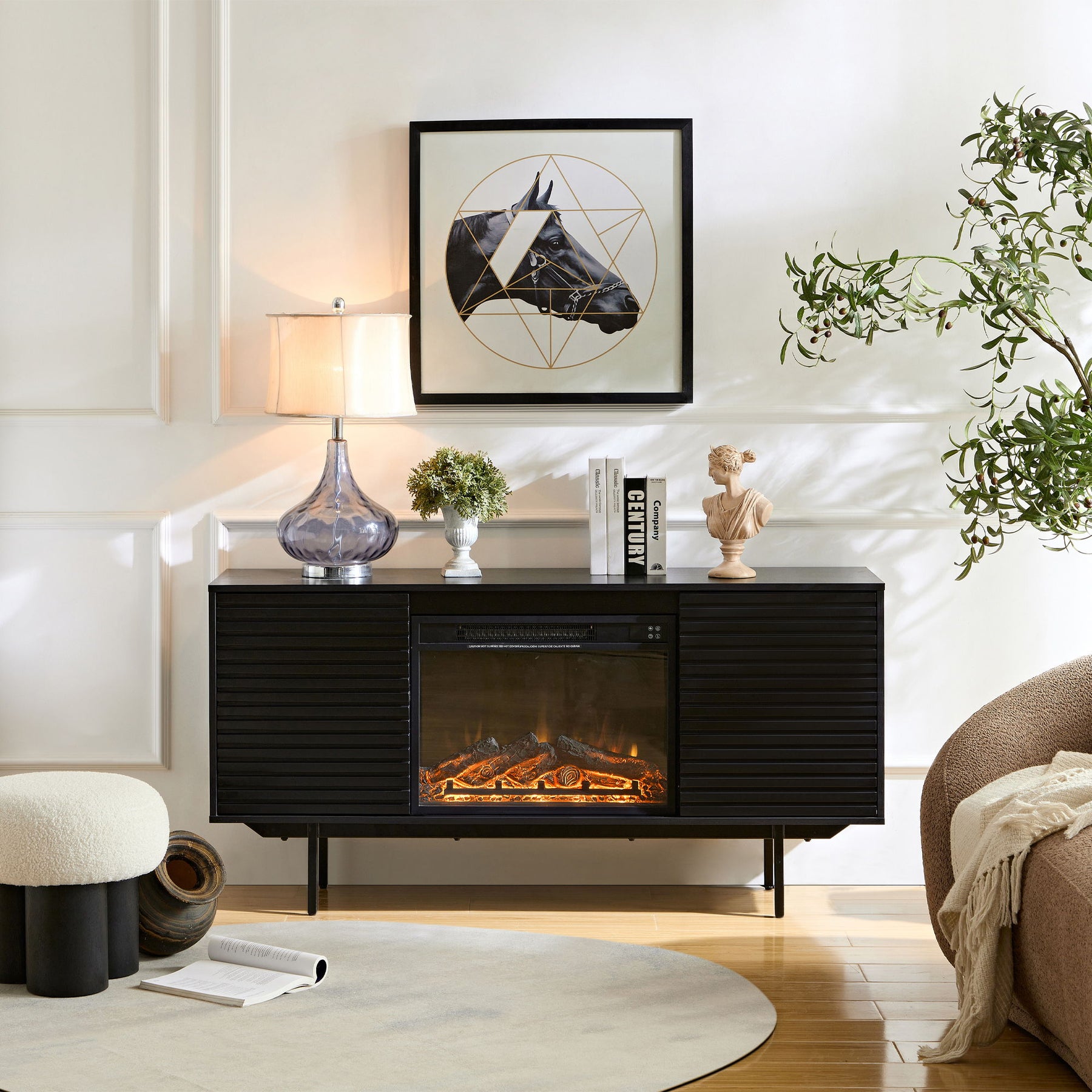 The whole cabinet is made of black oak, the fireplace is embedded in the middle, the fireplace has a remote control, the cabinet door opens to the outside, the inner layer of the cabinet can be adjusted height, and the iron foot can be removed. Personalized Adjustments: Uniquely designed, the side cabinets feature adjustable middle shelves, catering to your varied storage needs. This cabinet isn't merely home decor; it's a practical and flexible addition to your life. Exquisite Craftsmanship: The black matte powder iron feet provide sturdy support while introducing a modern design element, making this furniture piece a focal point in your space. The grooves on the panels not only enhance its aesthetic appeal but also add visual interest, lending unique charm to your home. Carefully Selected Materials: Crafted from high-quality black oak wood, ensuring durability and stability, this cabinet delivers a lasting usage experience.