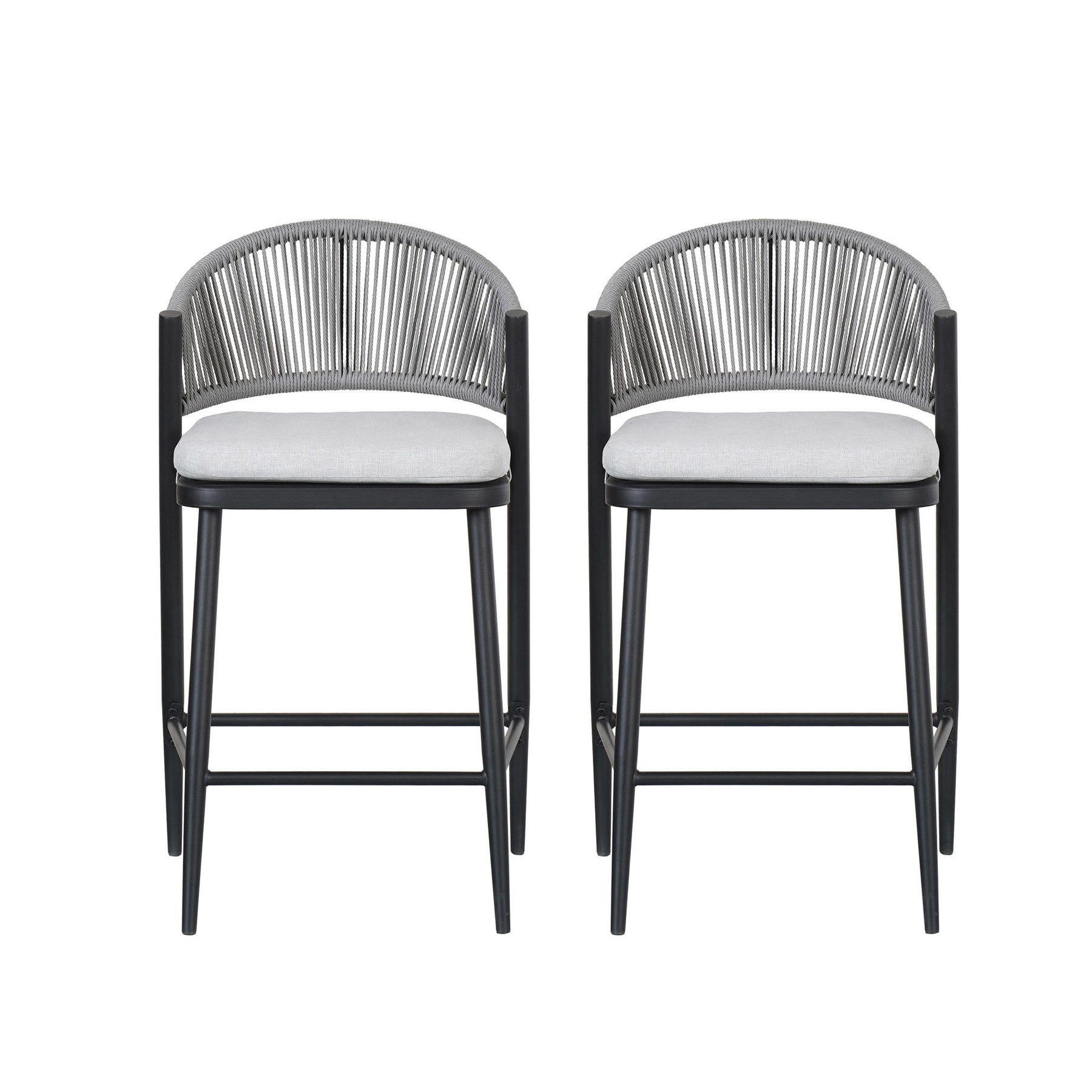 Outdoor Counter Height Metal Frame Counter Stools With Scallop Shaped Backrest & Water Resistant Cushions (Set of 2) - Matte Gray