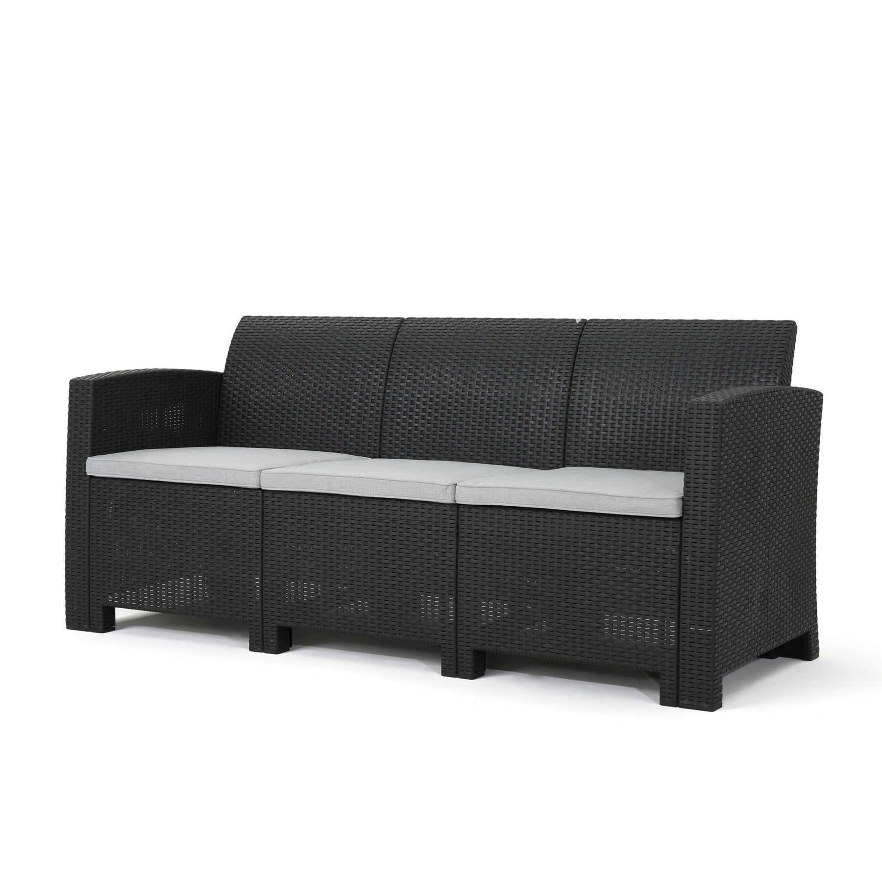 Outdoor 3 Seater Rattan Sofa With Water Resistant Cushions - Gray