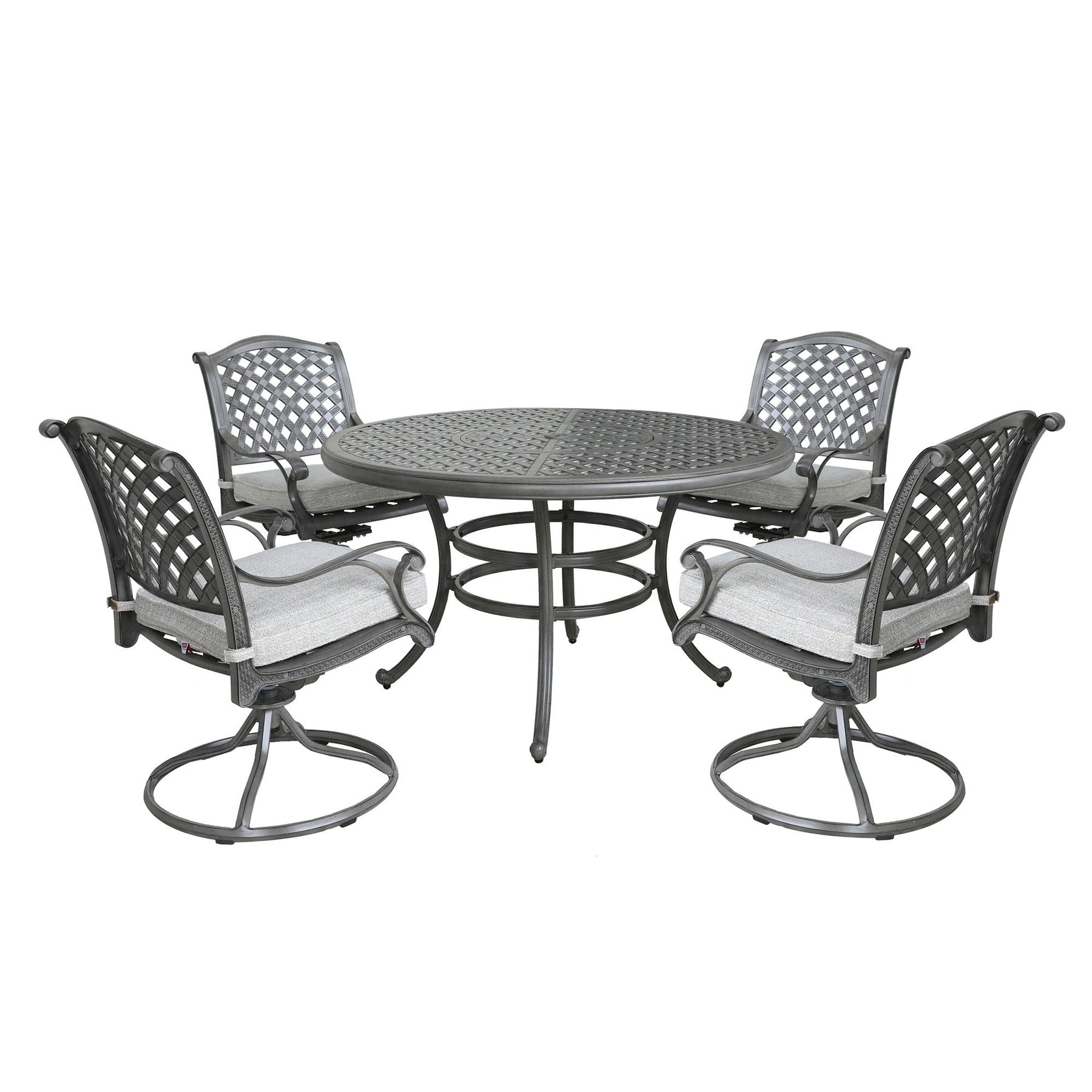 Outdoor 5 Piece Aluminum Dining Set With Cushion, Swivel And Rocking Chairs - Golden Gauze