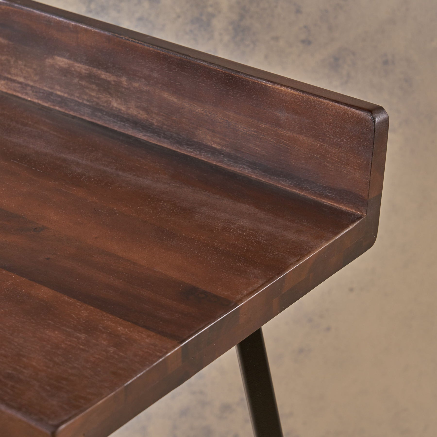 - Sleek Design: Tapered black legs and footrails complement the angular, square acacia wood seat, polished to a stunning sheen for a modern aesthetic.