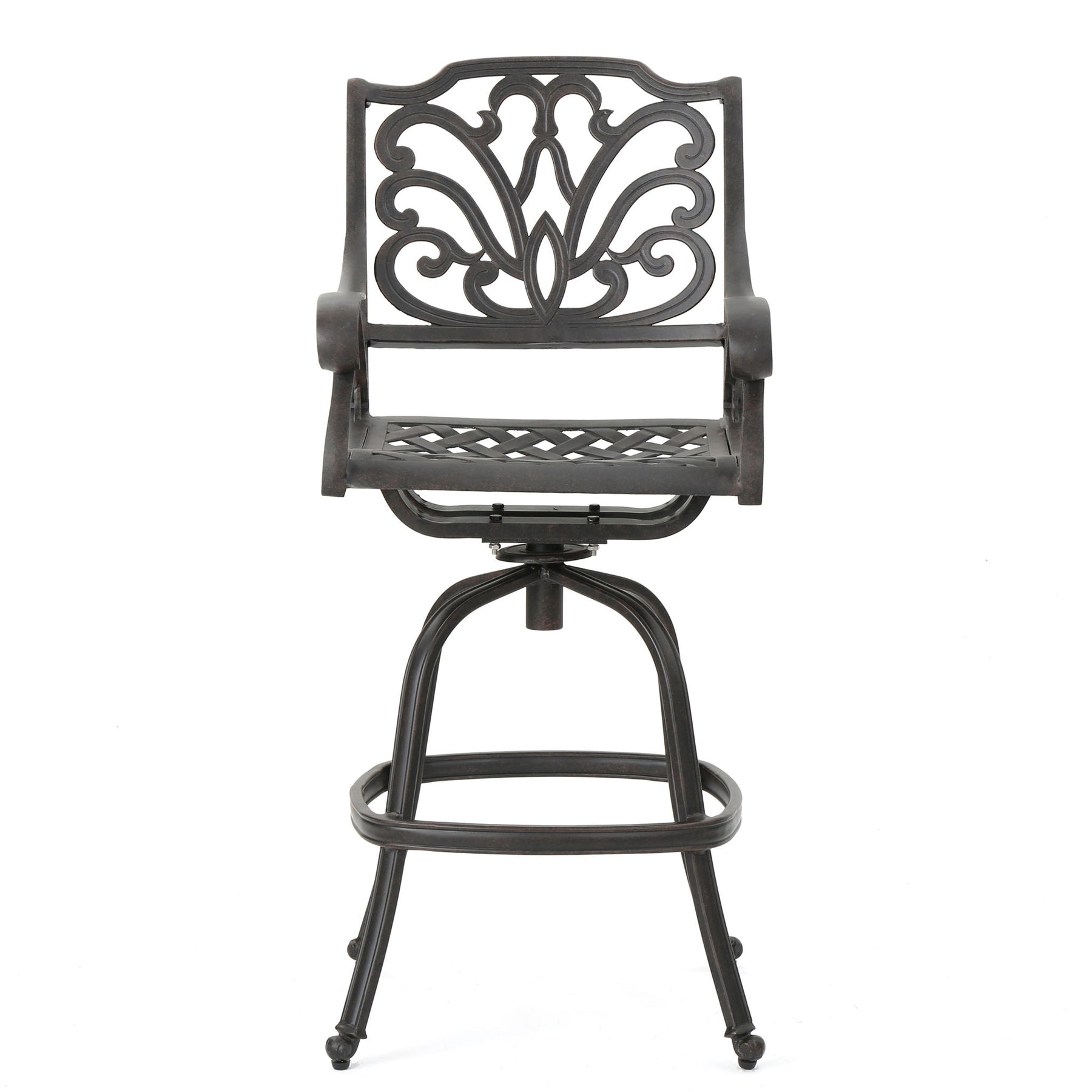 Outdoor Cast Aluminum Swivel Bar Stool With Scrolled Arms - Bronze