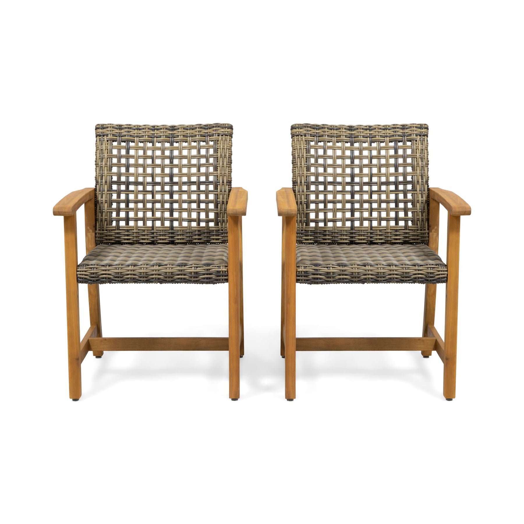 Outdoor Dining Chair (Set of 2), Teak Acacia Wood Frame - Natural Stained