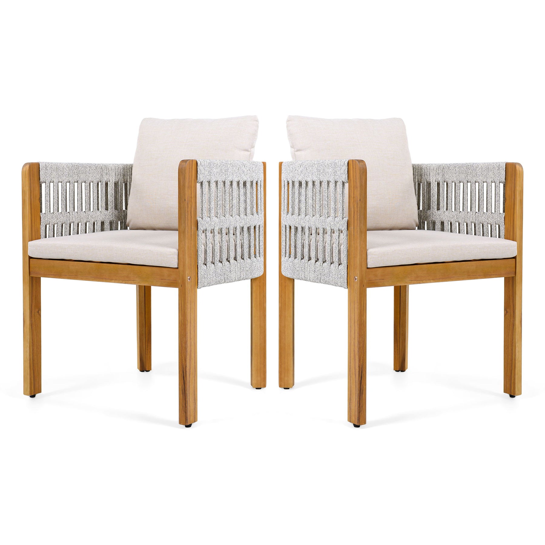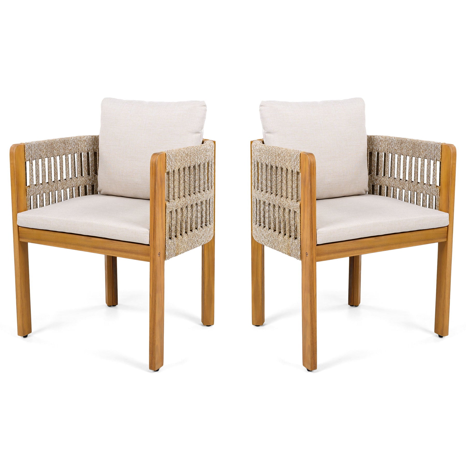 Outdoor Dining Chairs With Rope Handles (Set of 2) - Beige / Teak / White