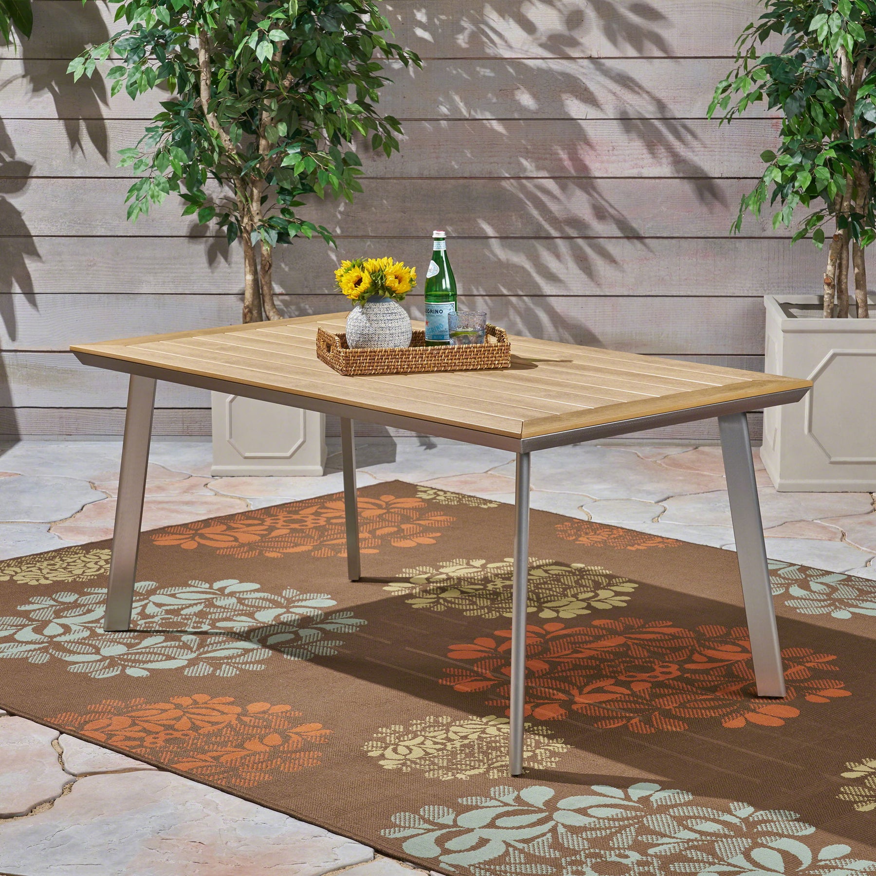 - Eucalyptus Wood Top: Our outdoor dining table features a stylish eucalyptus wood top, offering both durability and natural beauty to enhance your outdoor dining experience.