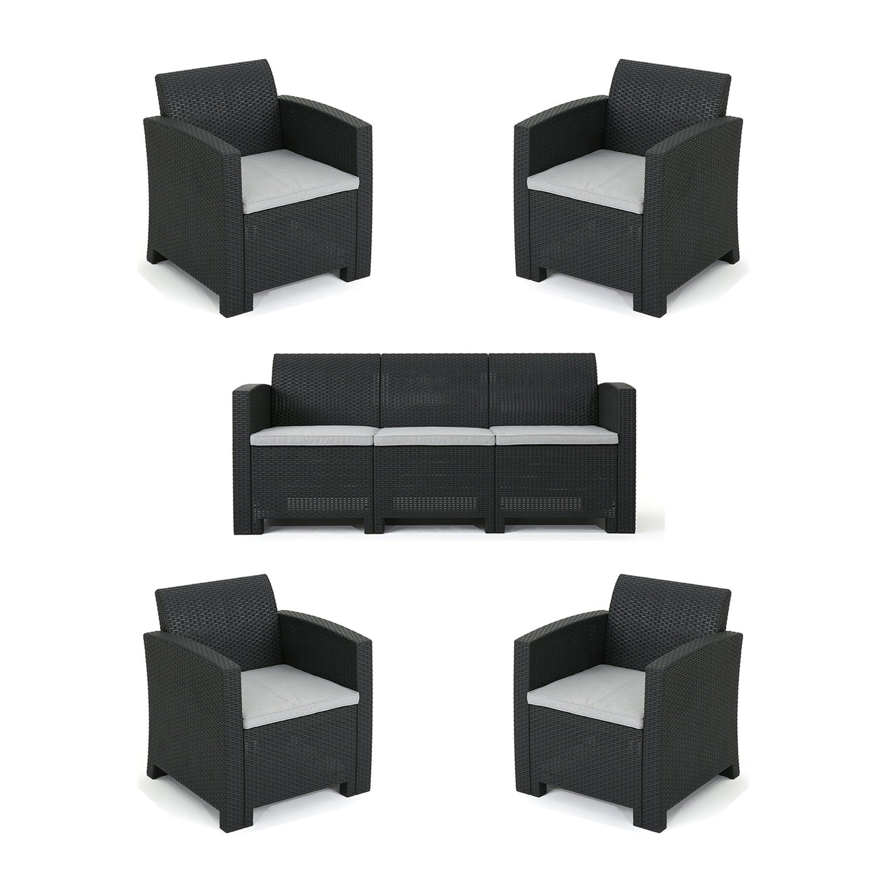 Outdoor Faux Wicker Rattan Style Chat Set With Water Resistant Cushions, 5 Pieces Set - Charcoal / Light Gray
