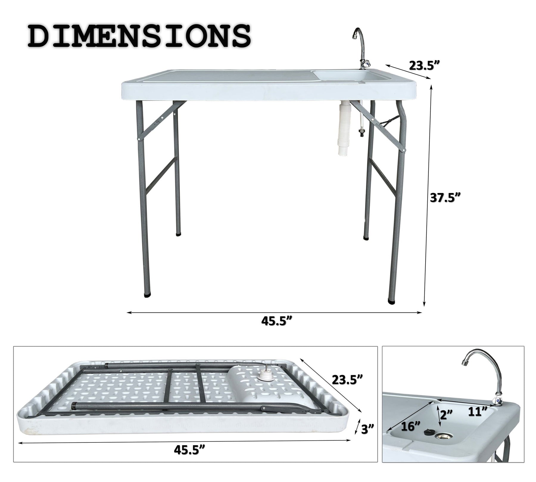 - Portable and Versatile: Ideal for cleaning fish, tailgating, or backyard parties, this table is easy to move and set up. It features a stainless steel faucet with a flexible sprayer that connects to a standard garden hose.