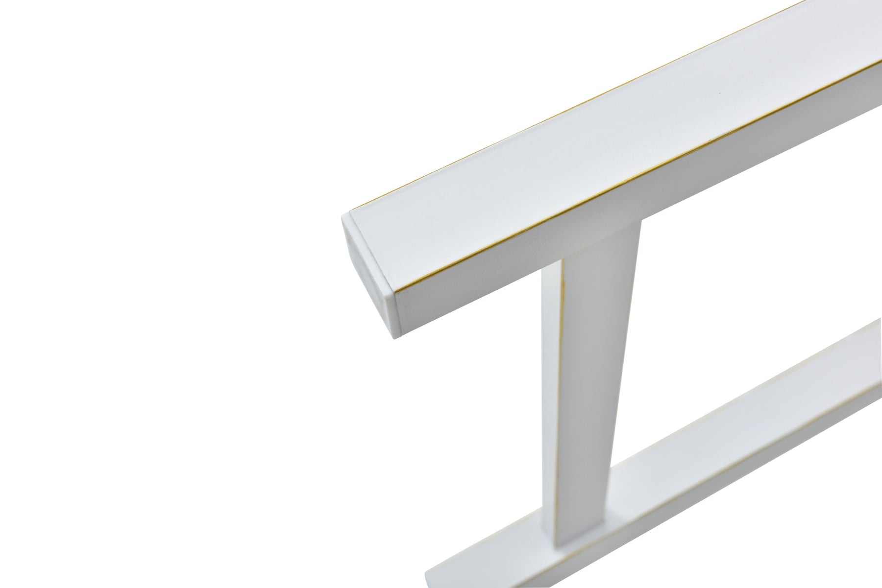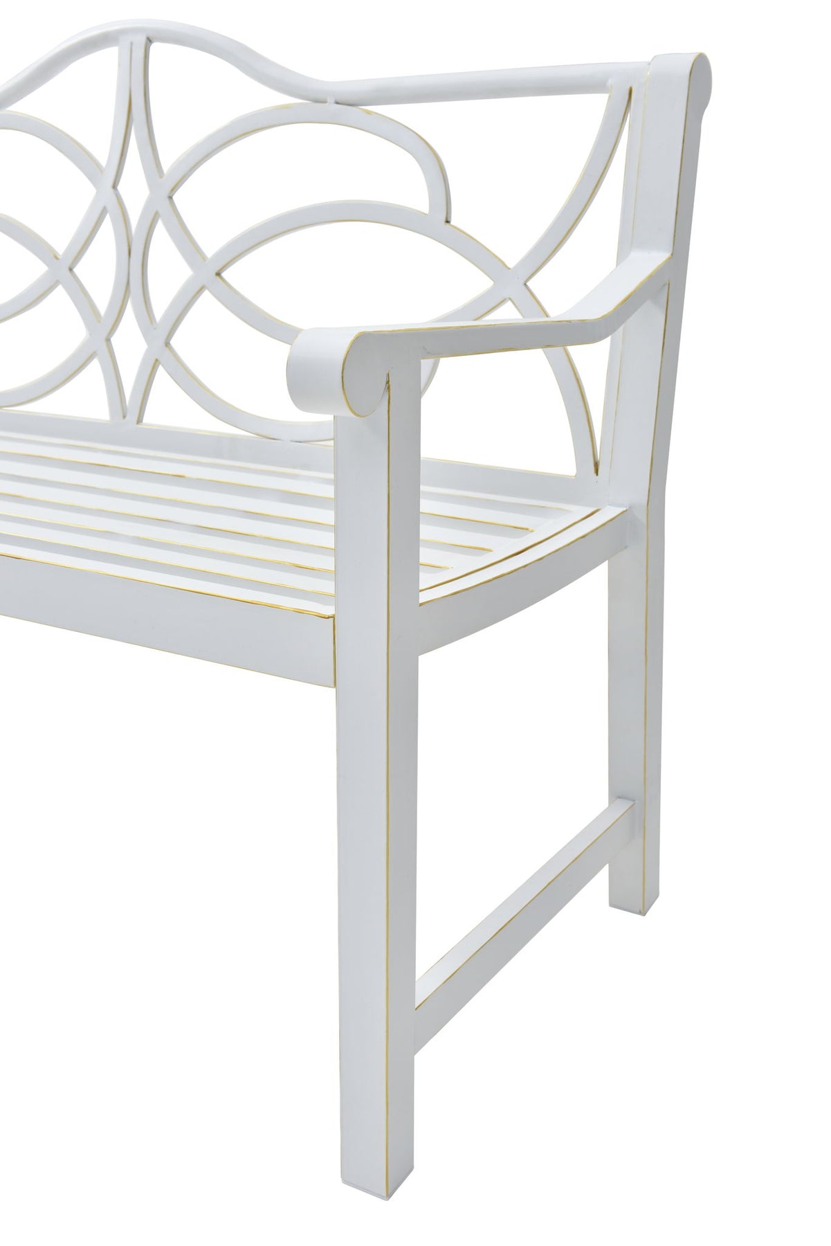 Outdoor Garden Patio Bench With Backrest And Armrest, Slatted Seat For Park, Yard & Porch, Balcony, Accommodates 2 - 3 People - White
